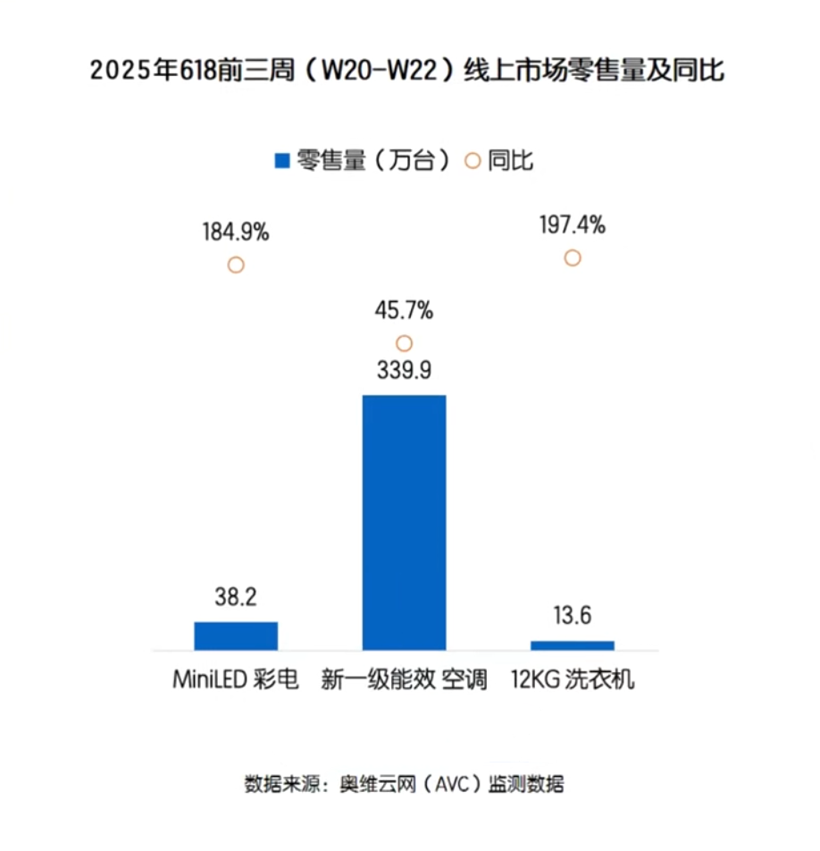 国补政策红利叠加大促优惠,今年618家电市场热力十足。数据显示,Mini LED电视、新一级能效空调、高效节能洗衣机以及智能小家电等品类表现亮眼,成交额纷纷突破历史峰值。
