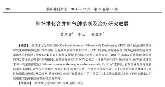 参考资料[1]黄东霞.肺纤维化合并肺气肿诊断及治疗研究进展,临床肺科杂志,2024-11-27