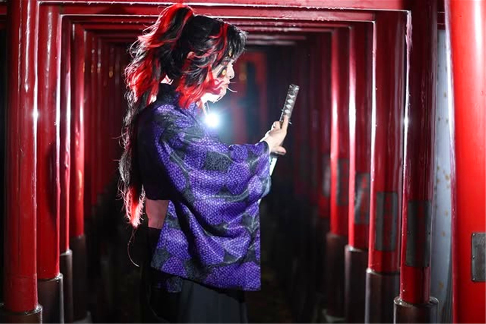 黑死牟那招牌的六颗红金色双瞳,紫色和服造型,红黑相间的长发、诡异霸气的气质,都被心凑一希还原了出来,整个人就像是从动漫里直接走出来的一样!恐怖又带点魅惑气息的Cos让人一看就屏住呼吸,2D和3D的界线仿佛消失了,网友们纷纷表示:“小孩看到会被吓哭”、“不只化妆,连照片散发的气场都超强”、“好想亲眼看一次”、“很可怕但又好美”、“感觉很强,愿意挑战黑死牟的人真的让人尊敬”!