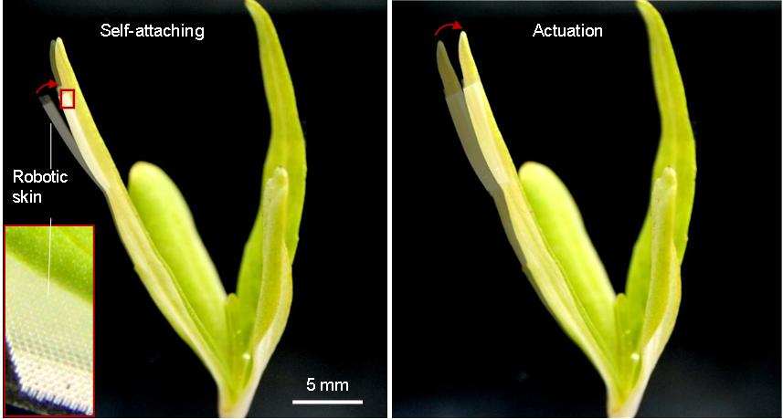 在第二个案例中,他们展示了一款机器人皮肤。相关实验里包含一个换能器和一片茶叶,中间放置着机器人皮肤。当打开超声的时候,皮肤会自动贴在茶叶上,由于它会产生反作用力,所以就会带着茶叶进行摆动。值得一提的是,这款机器人皮肤非常薄,贴在物体上几乎不会带来体积或重量的增加。