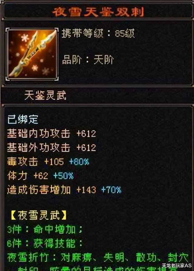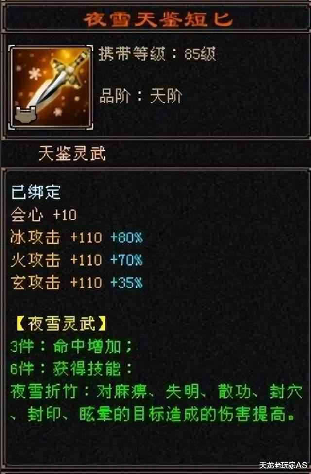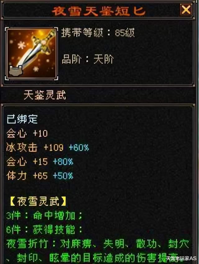 第三件是目前挂价最高的,来自【恶人谷】服务器的冰会体夜雪短匕,也是几乎拉满。