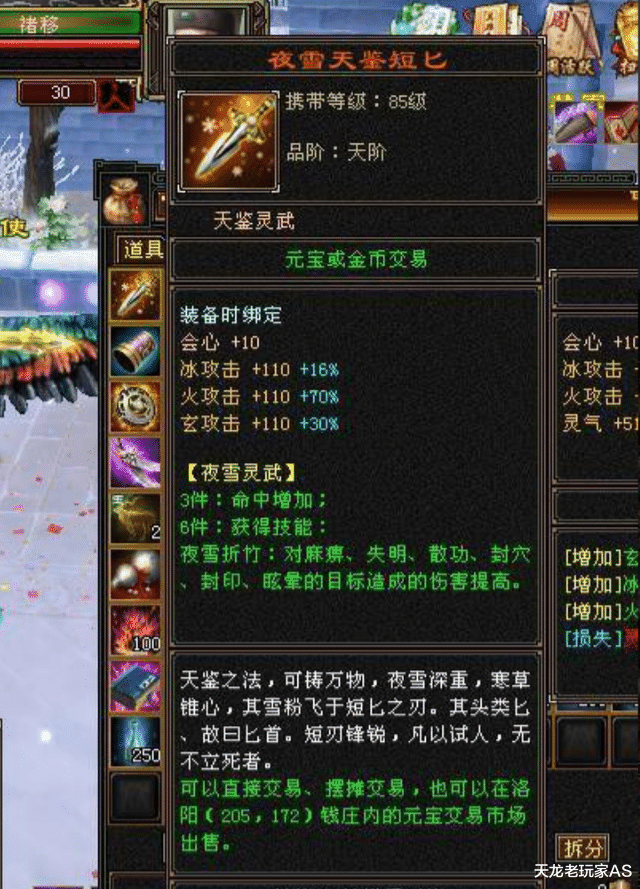 第一件,旭日东升服务器的冰火玄110三属性极品夜雪短匕,售价高达2万元!