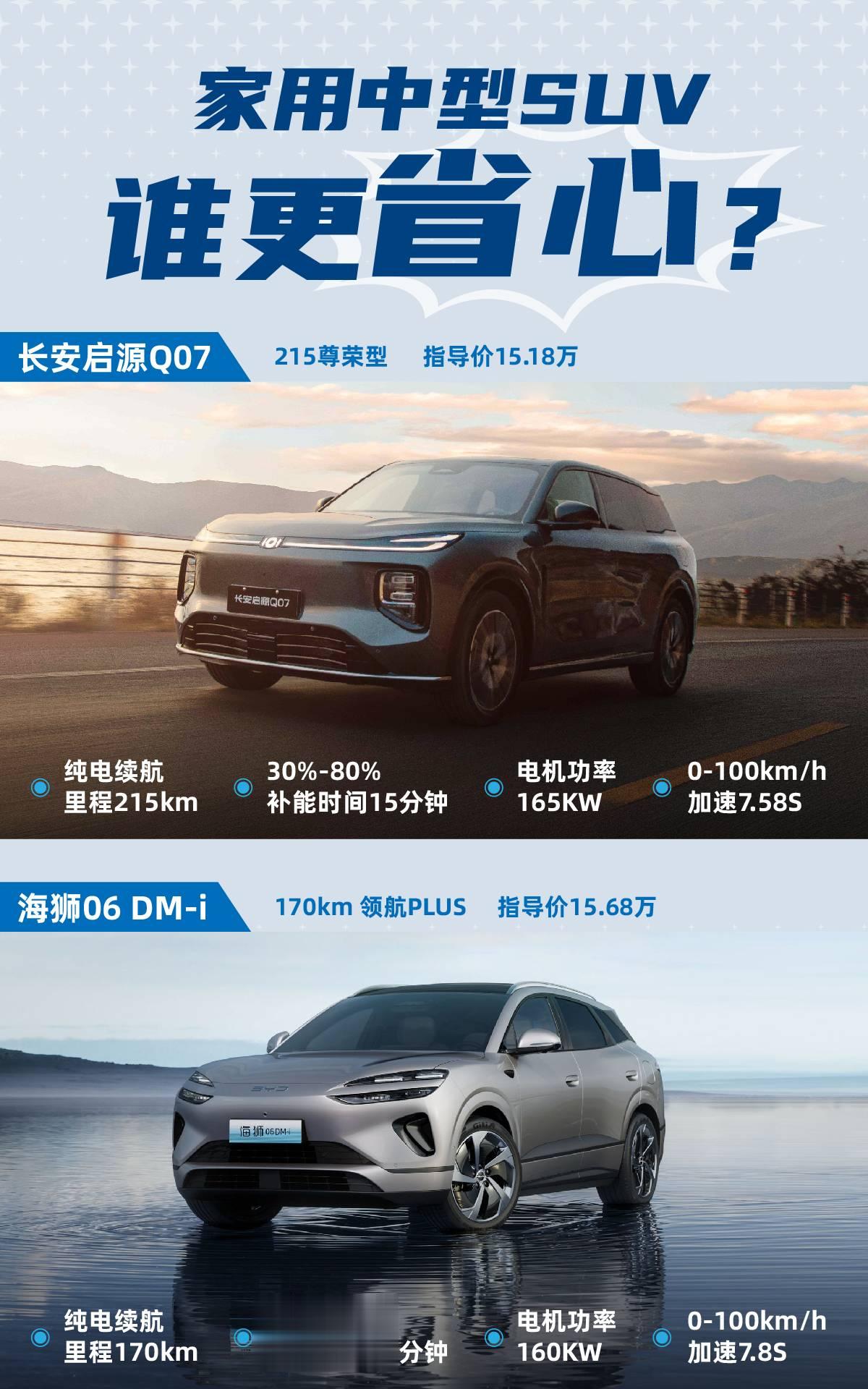 2025年诞生的插混SUV中,长安启源Q07和海狮06DM-i都是比较成功的车型,在15万价位的细分市场的销量都很靠前。要问家用该买谁?其实都不会错,但这显然不是负责任的答案,所以今天我们帮大家好好比一比。