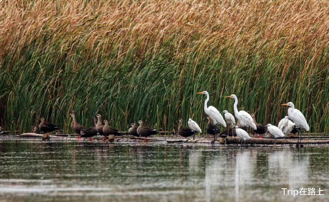 每年秋季,湿地迎来候鸟迁徙高峰。据介绍,高峰期湿地栖息着5万余只候鸟。这里是全球濒危物种遗鸥、黑脸琵鹭的重要栖息地,也是鹭鸟、白鹤、斑嘴鹈鹕等200余种鸟类的“服务区”。站在观鸟台上,可见成千上万的候鸟掠过芦苇荡,场面堪比纪录片《鸟的迁徙》中的场景。它们在这丰饶的土地上寻找食物、补充能量。你可以有机会亲眼目睹这些候鸟们的优雅身姿和独特习性,感受生命迁徙的壮阔。