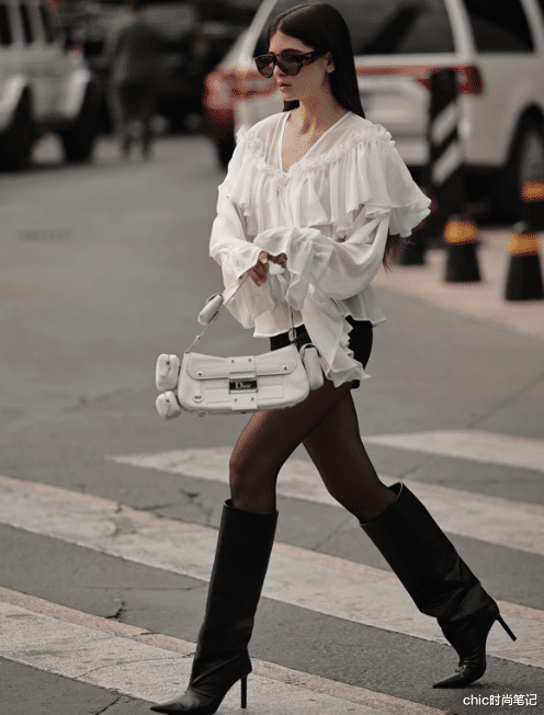 雪纺荷叶边衬衫是“老员工”了,基本上每年夏天都会流行,宽松、轻盈、飘逸都是雪纺衬衫的代名词,搭配高筒靴和黑超墨镜,直接slay全场。