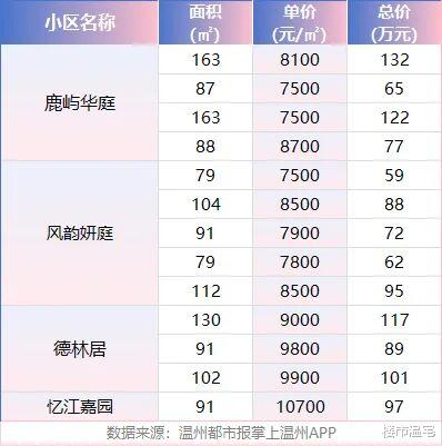 在黄龙康城以西,致雅居、瓯畔雅苑,几套二手房成交价,均在8000元/㎡之内。