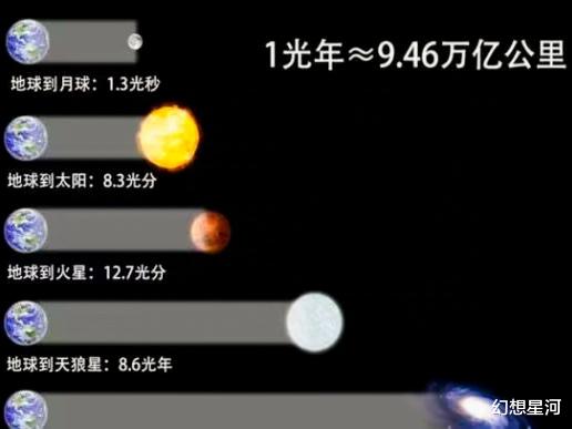 先从身边的宇宙聊起,感受下光年到底有多能装。地球到太阳那点距离,8分半钟也就够光跑一趟,你从冰箱摸瓶饮料,再拧开盖子抿一口,从太阳飞到地球的,已经是这功夫的光了。到太阳系边缘的冥王星,几小时也够用光跑一趟,比从北京飞纽约还省时间。踏出太阳系,距离就突然膨胀了,离太阳最近的比邻星,4年多才能让光飞到,夜空中最亮的天狼星,8年半得让光走满。到星系级别,银河系本身的直径就有10万光年,从银河系这头飞到那头,光得耗足10万年,到隔壁的仙女座星系,254万年也得让光跑够。