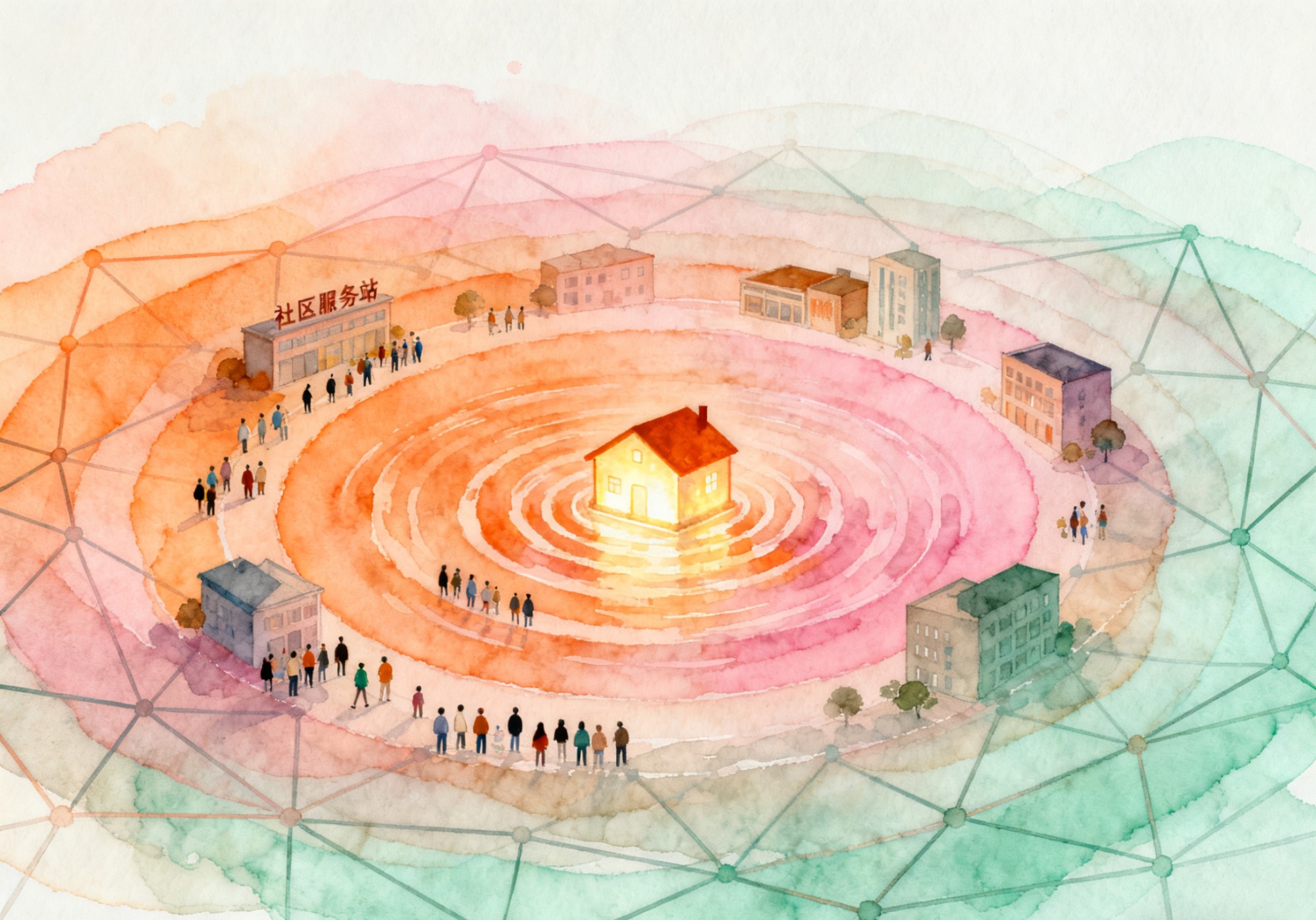商业模式创新的第二个维度是服务场景的延伸与重构。当我们将目光从“家庭”这个单一场景解放出来,会发现康养服务的需求无处不在。