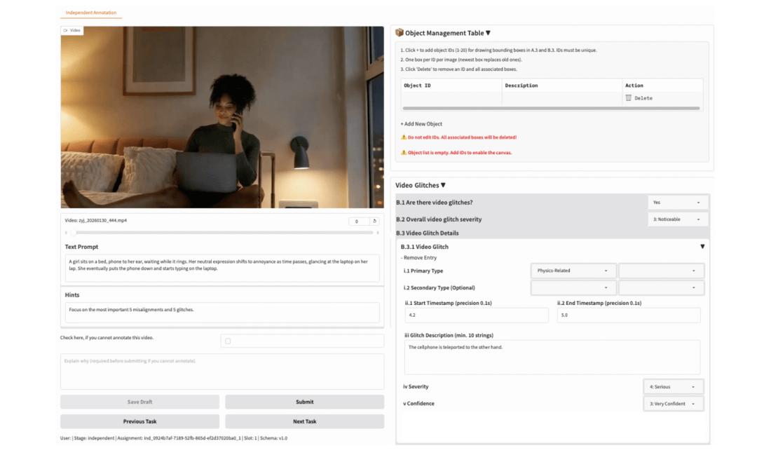 比如,一个物体是不是无缘无故消失了;两个东西是不是明明没接触却发生了交互;一个动作的结果是不是和前面的过程根本对不上。这些问题,才真正关系到模型是在 “生成一个像真的画面”,还是在 “模拟一个可信的世界”。