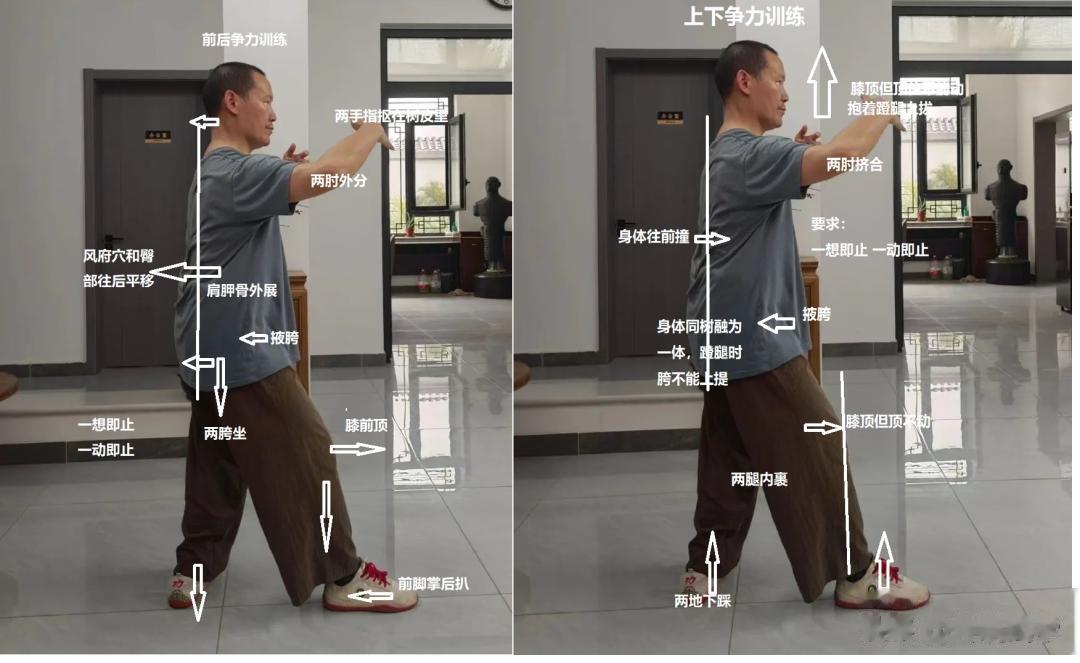 为了避免脊柱松弛过度和产生低头弯腰等现象,所以用拔背来控制。此外,拔背在技击时,还起着发力的作用。