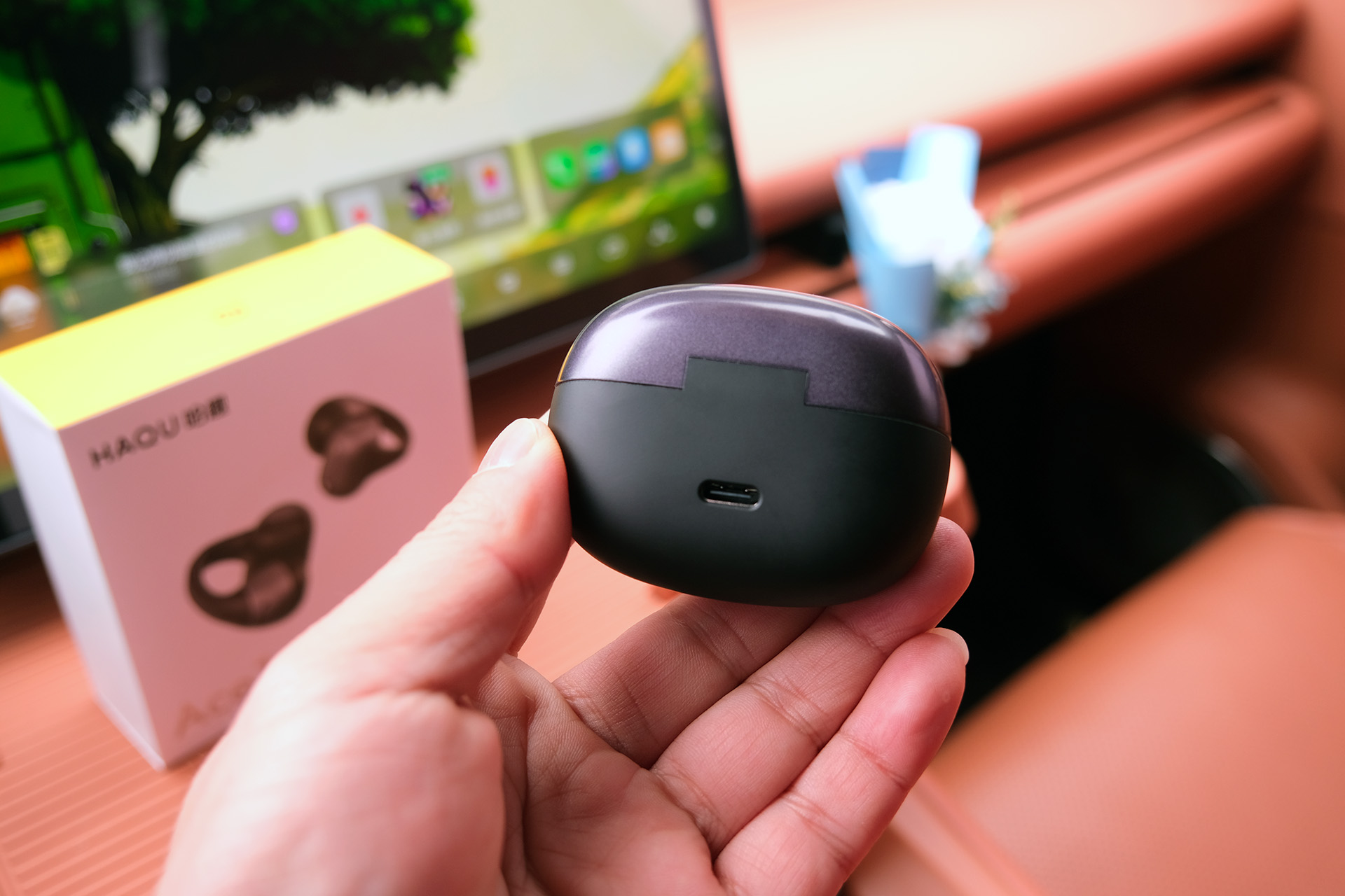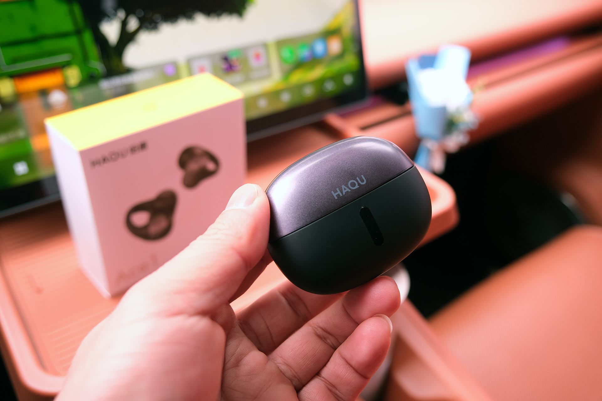 哈趣Ace1的外观设计完全长在年轻用户的审美点上,没有多余装饰,却在细节处藏着巧思。充电盒采用磨砂质感的方形设计,大小能轻松放在掌心,重量轻盈,塞进牛仔裤口袋或通勤包毫无压力,日常携带不会增加额外负担。