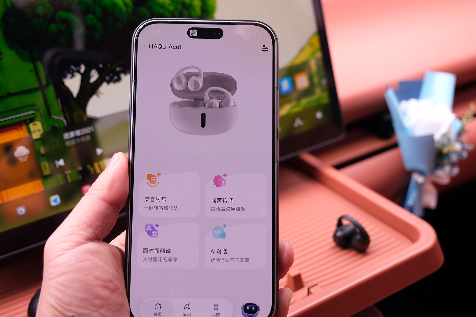 这是哈趣Ace1的加分项功能,完美适配年轻职场人和学生党的需求:支持 AI 多场景翻译(同声传译、录音转写、面对面翻译),不管是商务沟通还是旅行出行都能轻松应对;AI 办公助手能实时生成会议纪要、语音转文字,解放双手,提升办公效率。