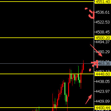 2、上方面临4500的关口,下方再次遇阻回落,下方调整,可再探4448的位置。此位置支撑反弹,继续看上方调整,以及挑战4500的关口。