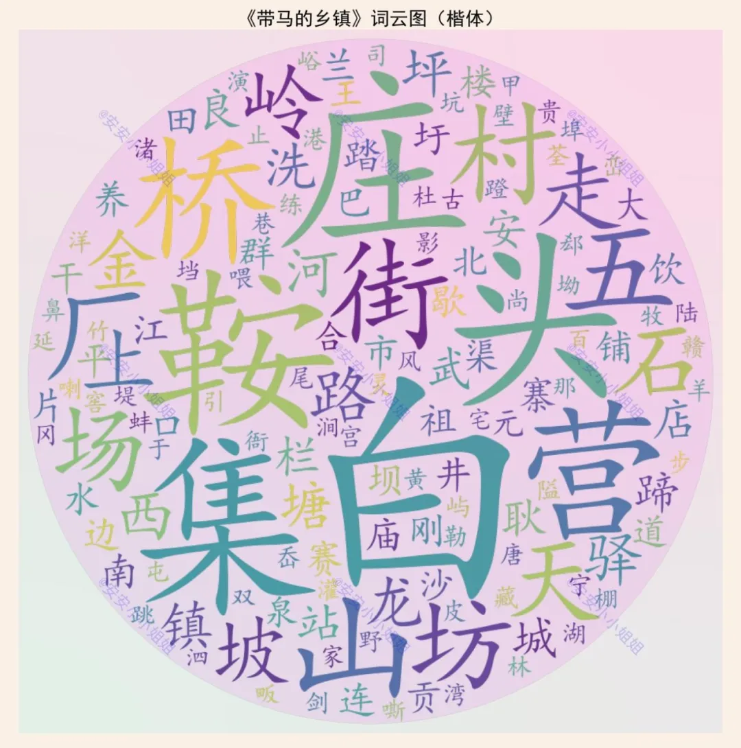 制作这样一幅词云图,需要收集大量地名数据,进行筛选与统计。最终呈现的高频字词,直观揭示了命名规律。