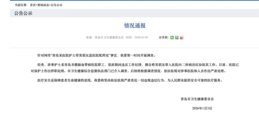 “值夜班还带男友来配药室帮忙贴标签、写报告?”近日青岛圣德脑血管病医院的操作,直接让全网网友炸了锅!涉事护士值班期间胆大包天,擅自把男友领进病房区核心配药室,让毫无医疗资质的他插手医疗相关工作,医院一句“她脑子有问题”的怒怼冲上热搜,目前护士已被停职,卫健委正深入调查。