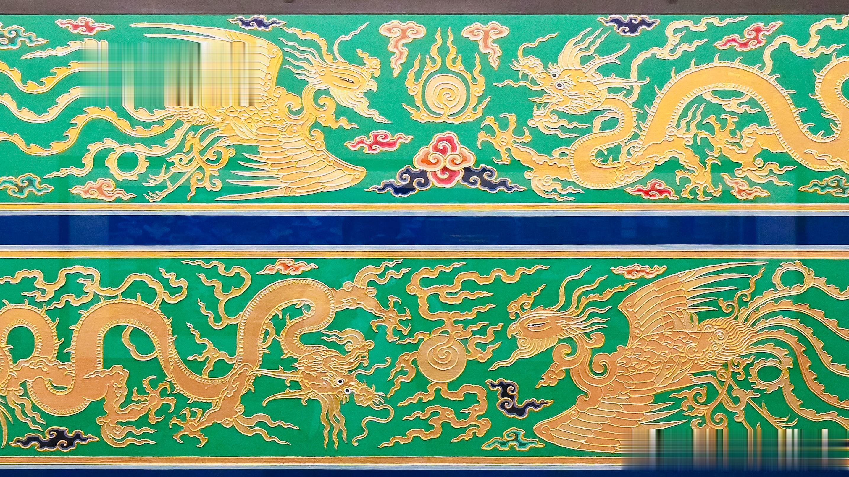 其构图特点是将龙纹与凤纹有机结合。在枋心、藻头、箍头等部位,龙纹与凤纹交替出现,或在同一枋心内绘“一龙一凤”相戏的场景。色彩上遵循“升青降绿”的原则:枋心为青地则绘升龙,为绿地则绘降龙;相应地,藻头青地则画风,绿地则画龙。这种龙与凤的交替与呼应,构成了动态的和谐画面,展现了皇家建筑中夫妻和睦、阴阳调和的理想境界。