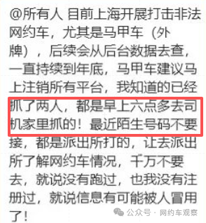 最近一周,上海重拳出击,严查非法网约车,力度前所未有。前几天,车友爆料上海有无证司机接到运管电话规劝,让他不要出车。
