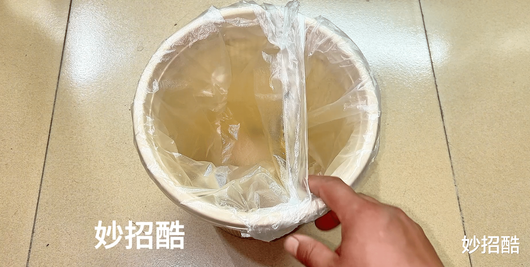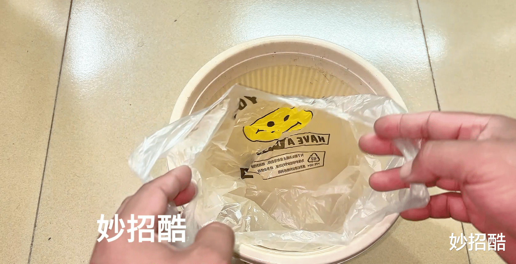 如果说垃圾袋非常小的情况下,我们还可以在垃圾桶上套上两个垃圾袋,这样就可以把垃圾干湿分离。