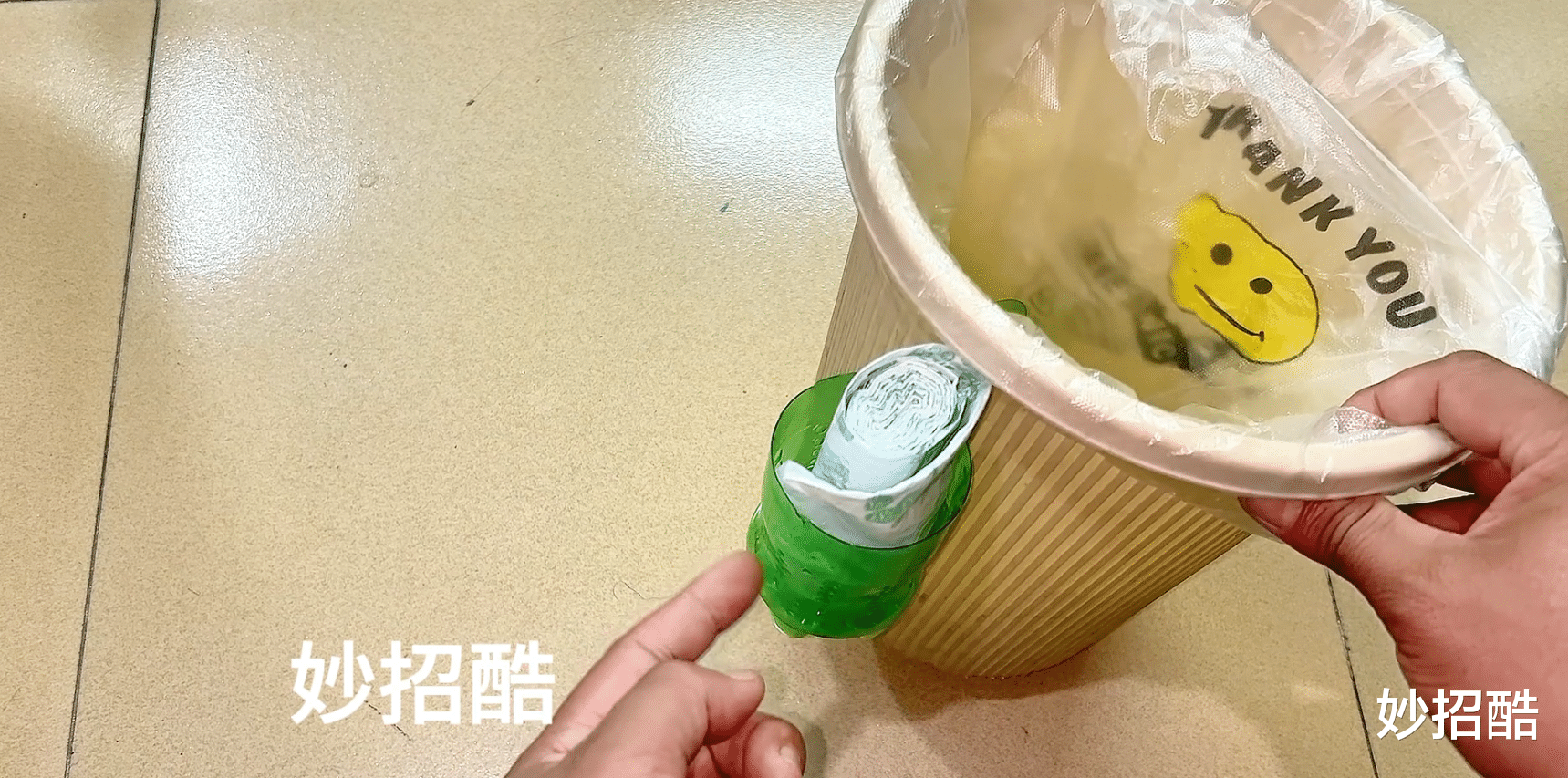 还可以把我们平时买菜时,积攒下来的塑料袋放在塑料瓶里。这样就可以随时用,随时拿了非常方便。用上这个方法,大家再也不为满房间找垃圾袋而烦恼了。