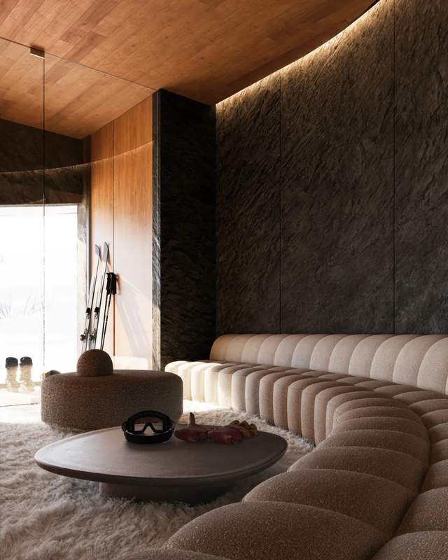 大面的玻璃幕墙与开窗模糊了内与外的界限,风景如气息般流入室内,阳光、风和四季在此交织成流动的画面。当地石材与木材的运用,既是对自然肌理的回应,也传递出对可持续与美学的双重尊重。