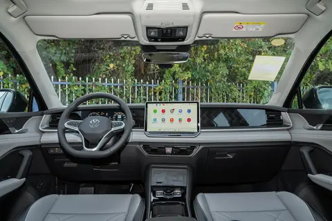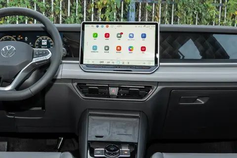 内饰布局未有大改,三辐方向盘搭配10.25英寸全液晶仪表+12.9英寸中控屏(高配升级15英寸),搭载高通骁龙8155芯片的ID.软件系统,支持OTA升级和语音交互。高配车型新增1.4英寸光轮智控旋钮,集成圆形触屏,可通过旋转/按压切换驾驶模式、调节氛围灯或音量,操作更直观便捷。全系标配旋转式电子怀挡、隐藏式行车记录仪、前后排Type-C接口、后排出风口和自动空调。