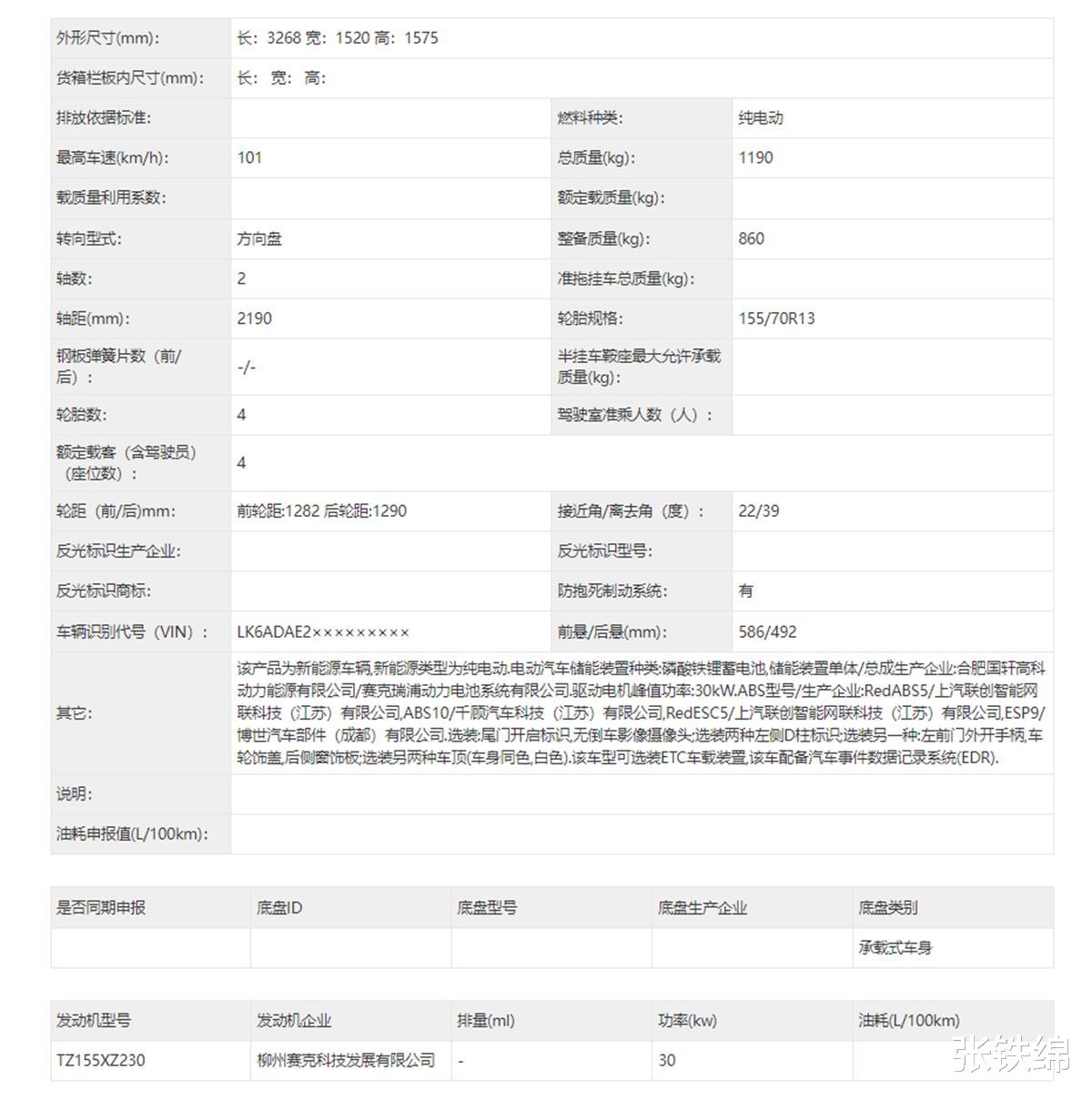 动力配置方面,此次申报的新款车型搭载的是最大功率30kW的电机,配备磷酸铁锂电池组,最高车速为km/h。