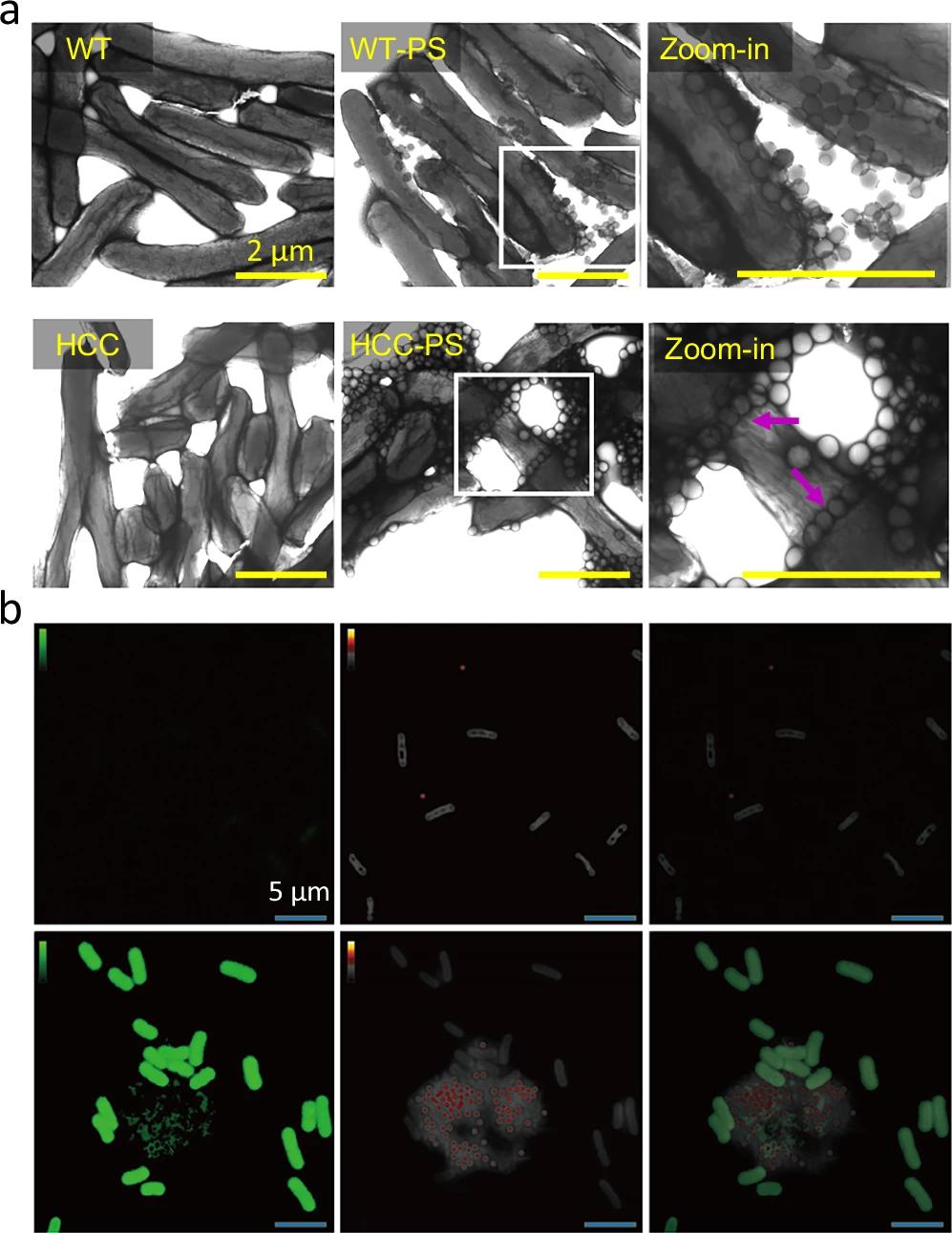 众所周知,大多数微塑料(如聚苯乙烯 PS)具有高度疏水性。基于相似相溶原理,研究人员基于 Synechococcus elongatus UTEX 2973 这一生长迅速的蓝藻底盘,构建了名为 HCC 的工程藻株。通过基因工程改造,使得该藻株能够合成并分泌一种名为柠檬烯的萜类物质。该菌株在生物质、糖类及化学品生产等工业应用中潜力巨大,并已被提议用于废水处理及营养盐去除。
