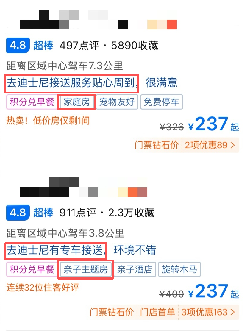 在这种逻辑下,几乎所有周边酒店都扎堆主打“距离牌”:宣传页上满是“10分钟直达乐园”的标语,比拼着接驳车的发车频率,价格成为核心竞争点。