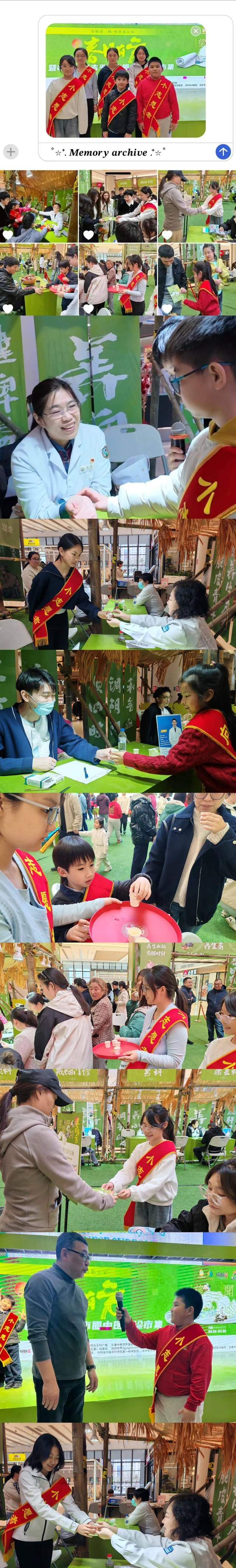 “岐黄”小志愿者们纷纷上阵,10位来自长春不同学校、不同年级的同学,身披“小志愿”者的绶带为大家发放义诊卡、提供中医茶饮,成为中医药文化的小小宣传员。
