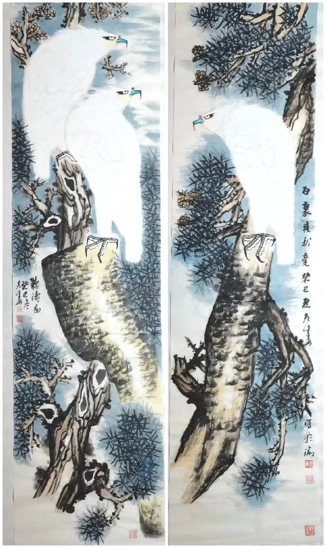 《聽涛图》180cm×49cm×2
