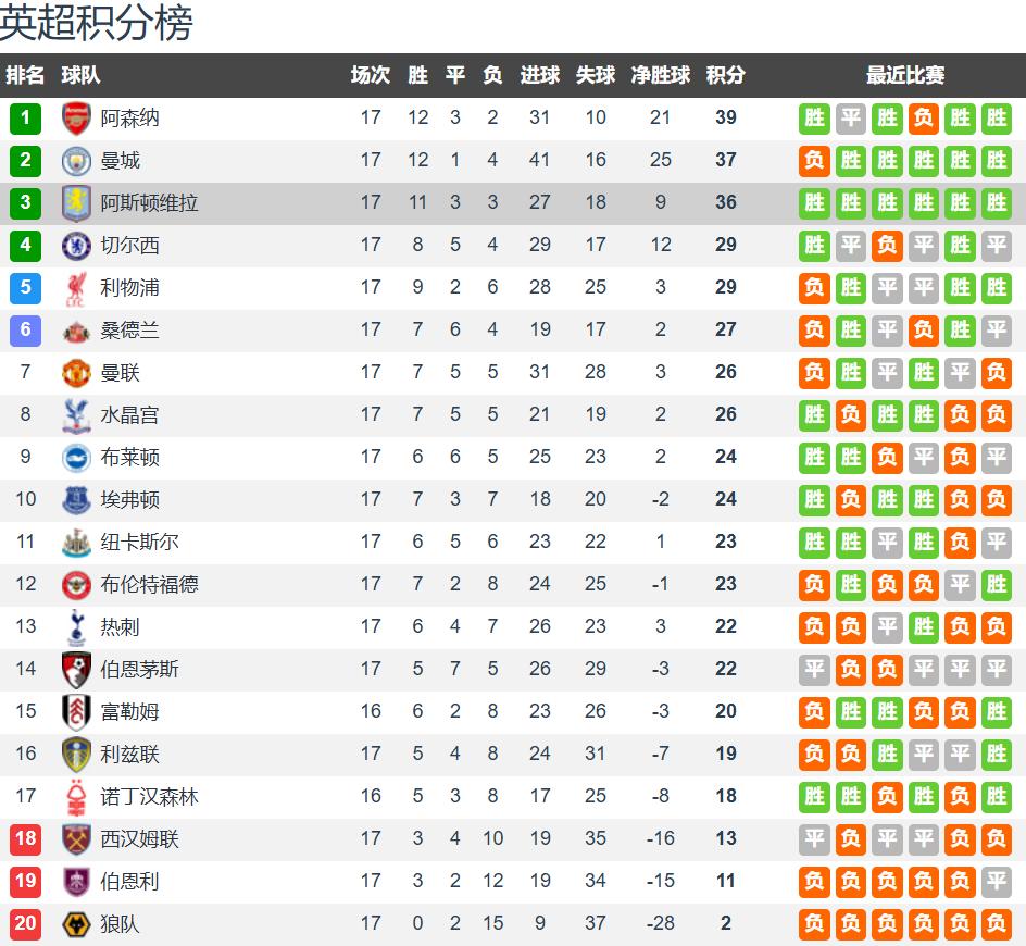 英超17轮战罢,阿斯顿维拉11胜3平3负积36分排名第三,仅落后前二1分,牢牢占据争五(欧冠名额)的主动权,也会是英超争冠的竞争者。