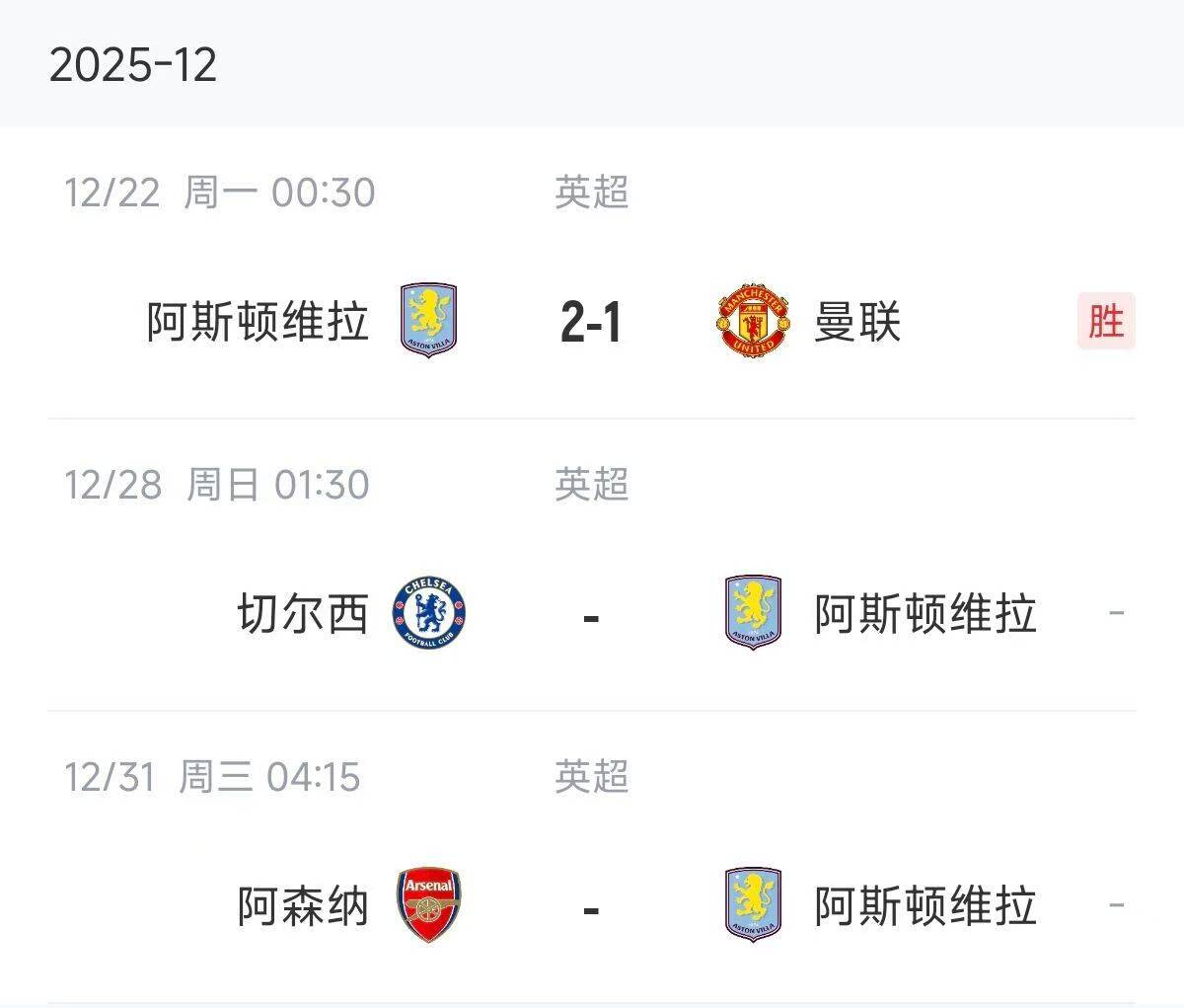 阿斯顿维拉主场2-1击败曼联之后,这是英超联赛三战big6球队的序章,接着阿斯顿维拉要面临两个客场的英超联赛,分别是客战切尔西和客战阿森纳,面对两支伦敦球队,这将考验阿斯顿维拉真正的战力。阿斯顿维拉若能在对阵切尔西和阿森纳的比赛继续保持不败的话,那么阿斯顿维拉或许会成为争冠球队,也会是欧联杯争冠第一热门球队。下周的周中一切皆可见分晓,到底是魔鬼赛程更魔鬼,吞没阿斯顿维拉,还是魔鬼阿斯顿维拉更魔鬼,无惧魔鬼赛程。
