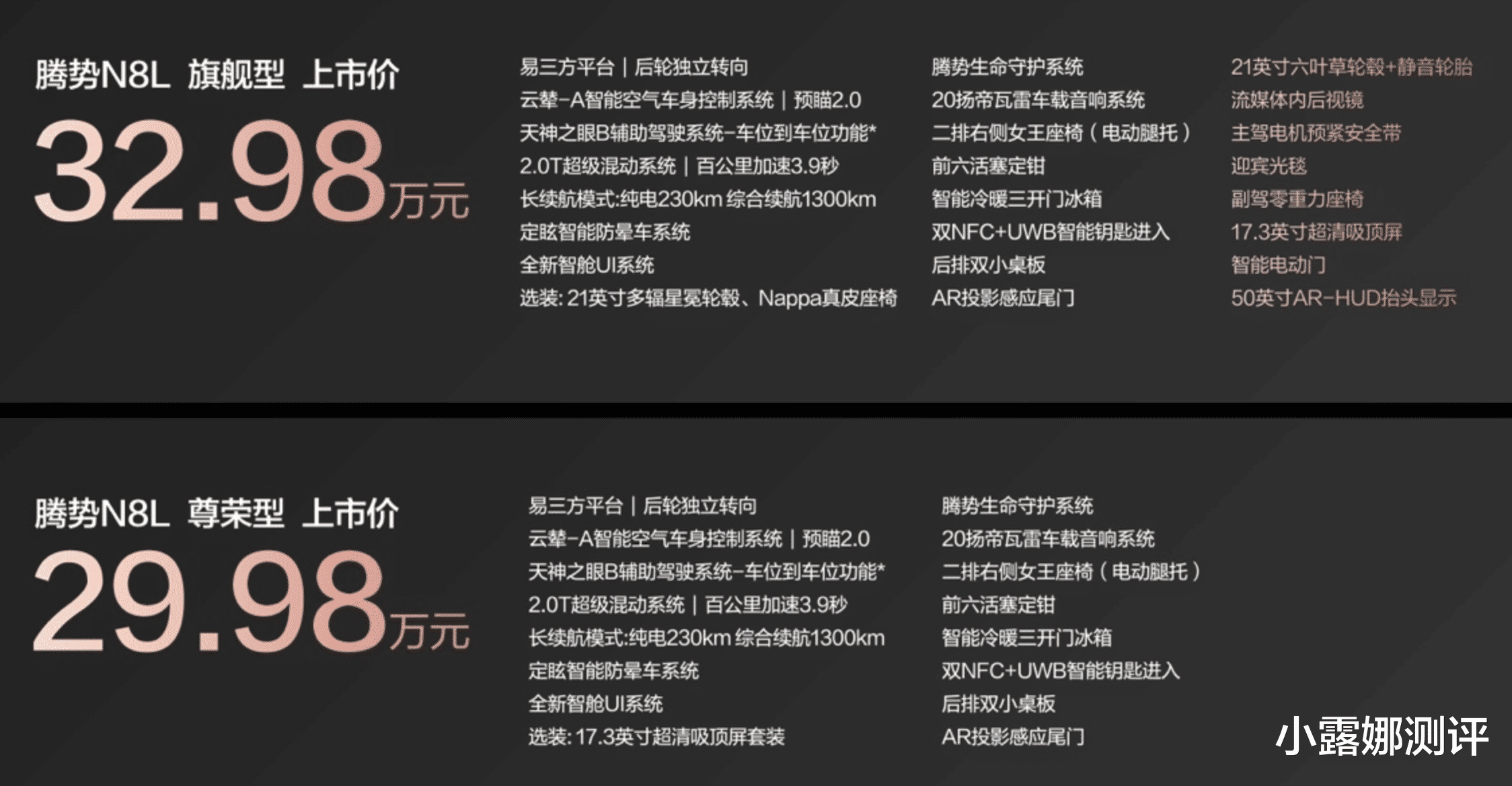 10月28日,腾势N8L正式上市,售价29.98万-32.98万元。这个价格一出,不少人说:“这不是冲着理想L8和问界M7来的吗?”但看完配置和体验,我发现腾势N8L不只是“对标”,它是在用“超纲”的标准,重新定义家庭豪华SUV。