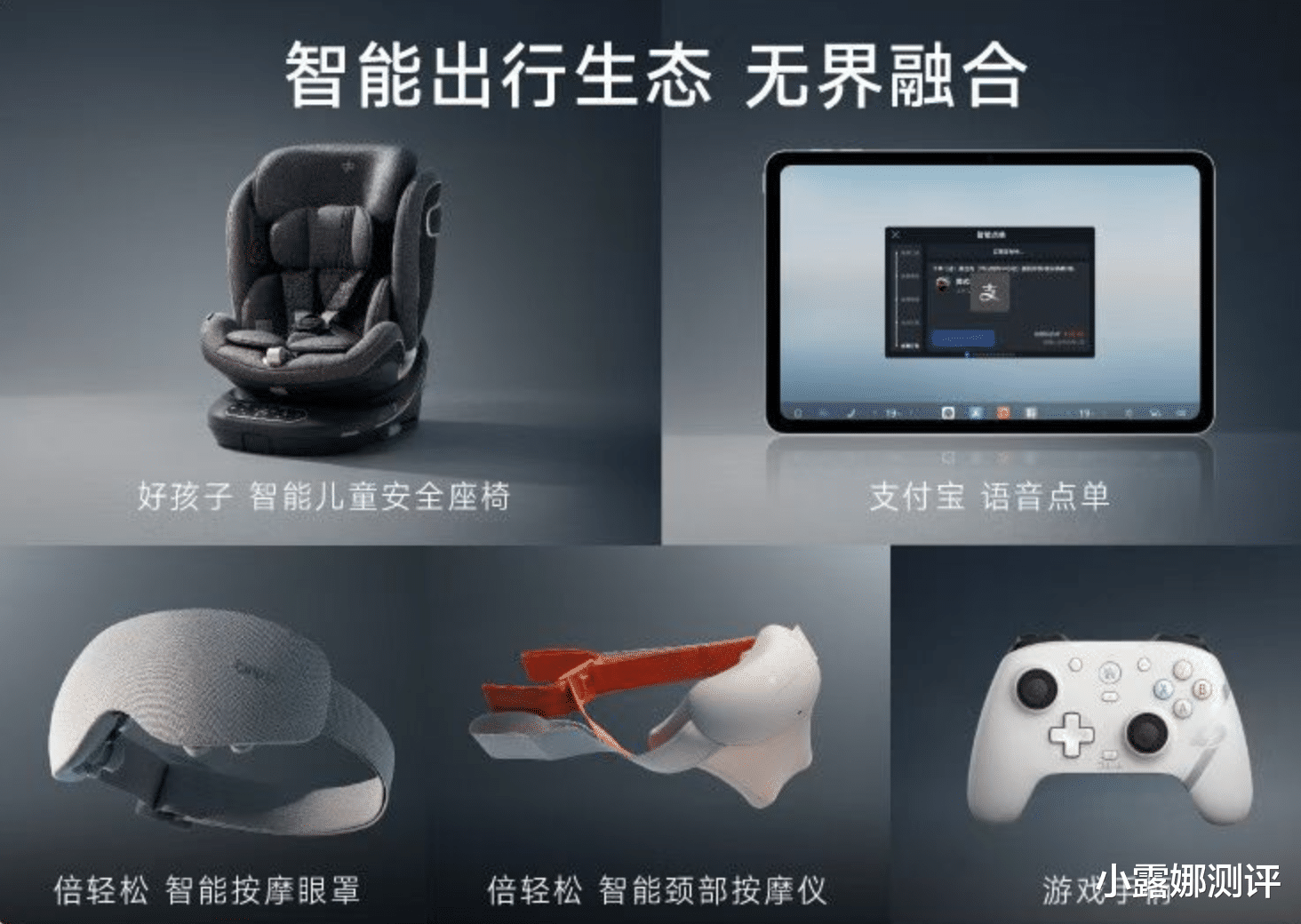 过与好孩子、倍轻松等品牌合作,还实现了倍轻松智能眼罩、颈部按摩仪、好孩子智能儿童安全座椅、智能宠物安全座与车机联动,同时支持影石Insta360 X5等外设与车机互联。