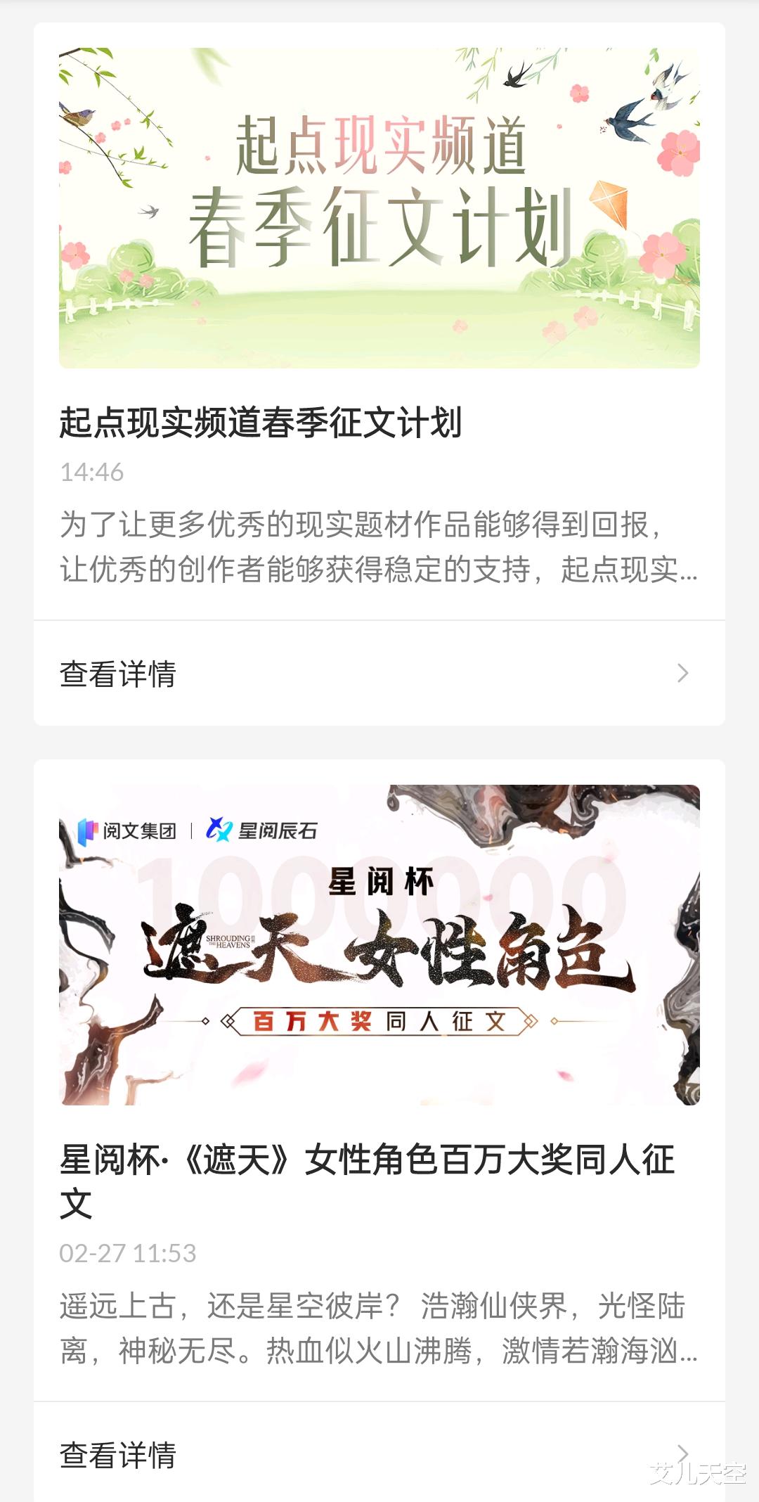 这些征文活动都可以在阅文的作家助手APP上看到,详细内容可以移步看看。