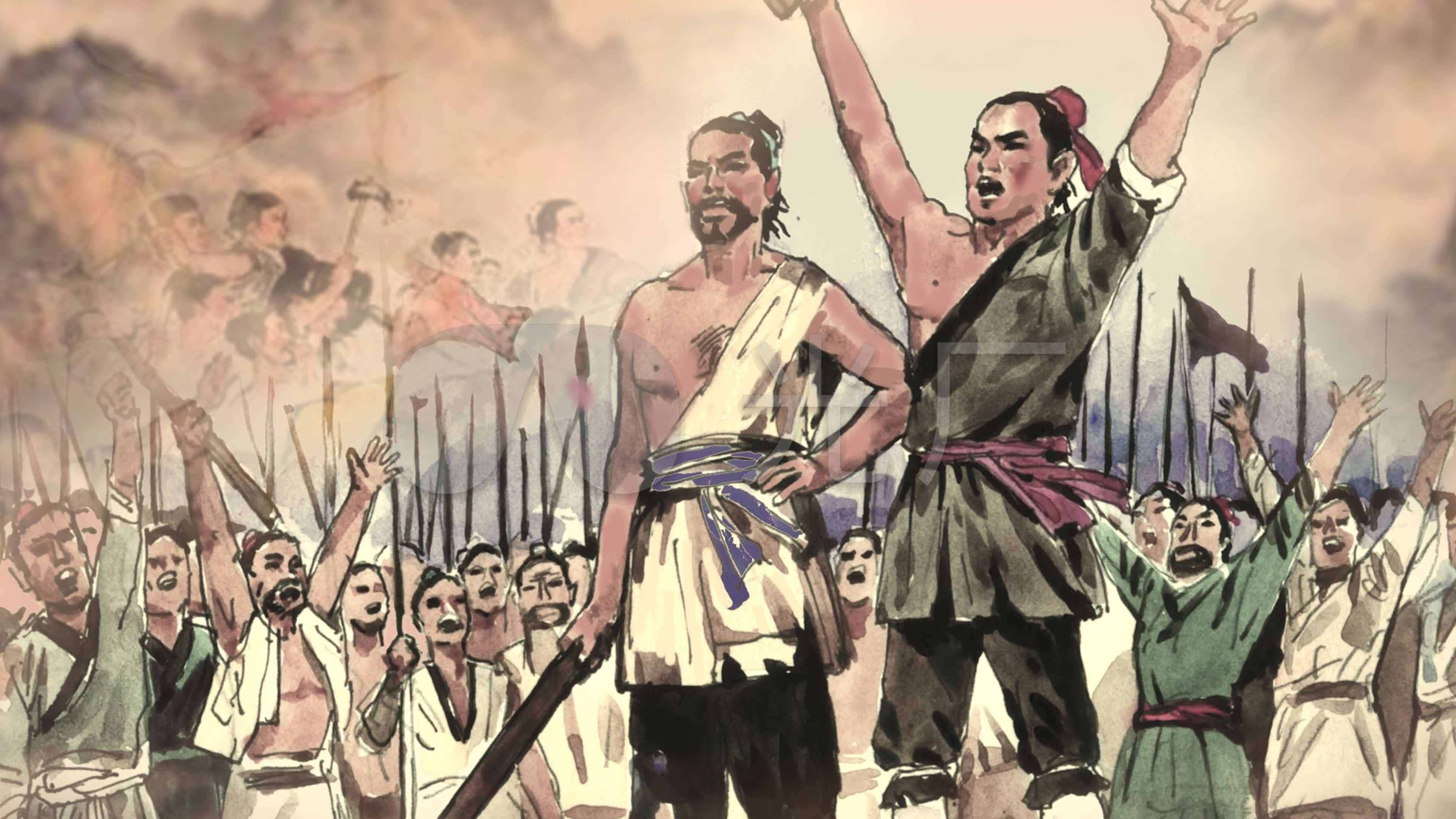 公元前209年,一场突如其来的暴雨让九百名戍卒滞留在大泽乡(今安徽省宿州市),无法按时抵达渔阳。按照秦律,延误军令者皆斩。面对死亡的威胁,戍卒陈胜与吴广意识到,与其坐以待毙,不如拼死一搏。他们杀死了押解的军官,向同伴们发出振聋发聩的呼喊:“王侯将相,宁有种乎?”这句话,如同一把钥匙,打开了人们心中长久以来被禁锢的反抗意识。戍卒们纷纷响应,起义的火焰在大泽乡熊熊燃烧起来。