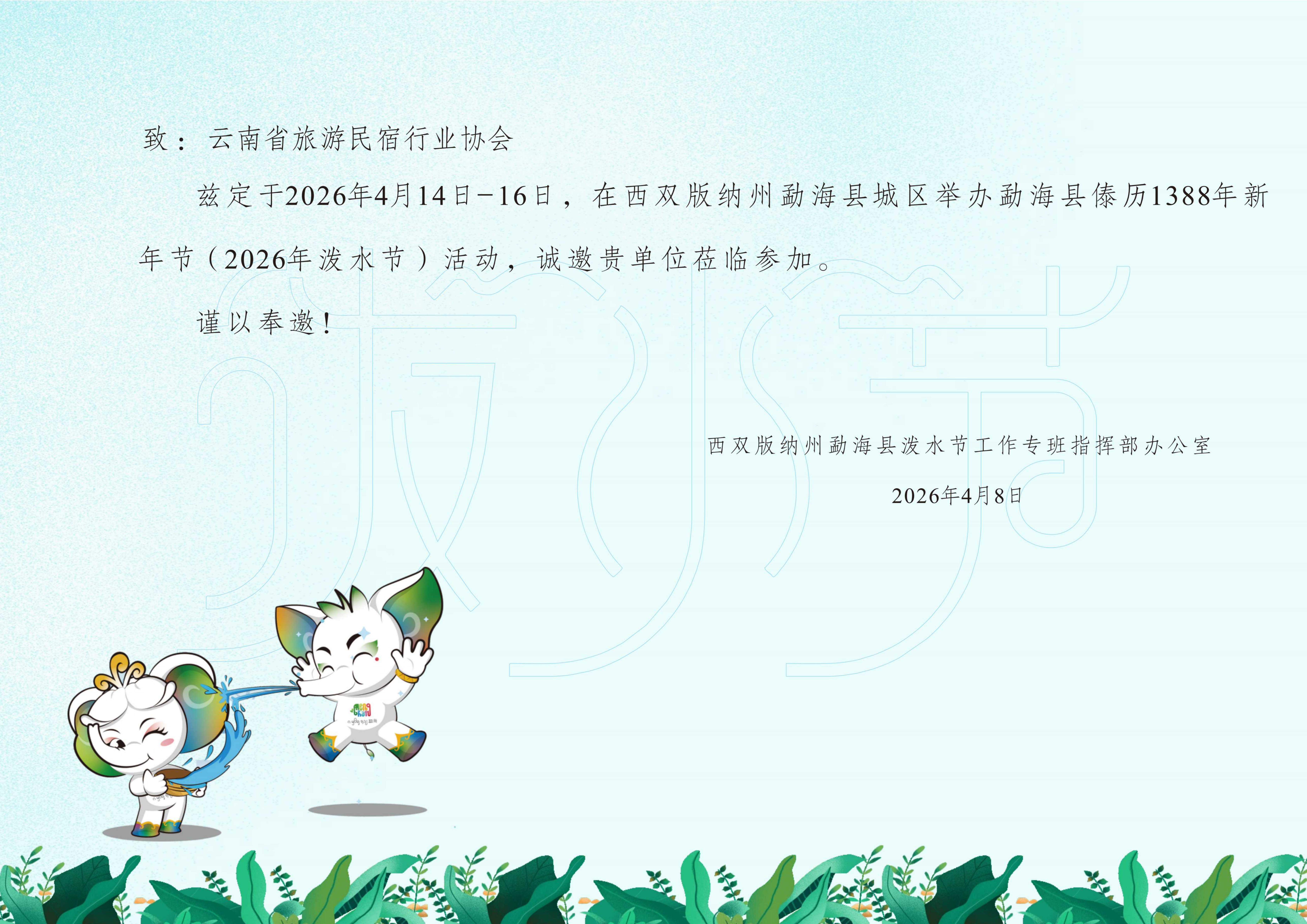 近日,云南省旅游民宿行业协会正式收到了来自西双版纳州勐海县泼水节工作专班指挥部办公室的官方邀请 。这份跨越山水的邀请函,不仅是对协会的认可,更是向所有热爱云南、热爱民宿、热爱生活的小伙伴们发出的集结令。