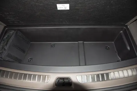 车门板的储物格足以容纳大号保温杯和折叠伞;中央扶手箱深度可观,能轻松装下孩子的全套洗漱用品;甚至连第三排座椅侧面也设置了专门放置水杯和小物件的空间。后备箱的实用性同样出色,在第三排座椅立起的状态下,依然可以容纳两个20寸登机箱和一个婴儿车,满足日常机场接送或超市采购需求。当后两排座椅放倒后,可扩展至1128升的容积,装载帐篷、烤架、睡袋等大型露营装备不在话下。此外,后备箱下层还有一个51升的隐藏式储物格,可以用来存放露营工具等物品,对于注重儿童安全的家庭来说,这个设计非常贴心。
