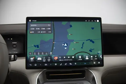 车内的屏幕布局是亮点,但核心在于“好用”而非“堆砌”。让我印象深刻的是前方50英寸的AR-HUD抬头显示,它将导航信息、车速等关键数据直接投射在前风挡上,驾驶时视线无需离开路面,大大提升了高速行车和复杂路况下的安全性。中控17.3英寸的2.5K高清大屏显示效果细腻,操作流畅度得益于其搭载的4nm芯片,应用切换几乎无延迟。一旁的13.2英寸副驾娱乐屏,则能让乘客在旅途中享受影音娱乐,互不干扰。