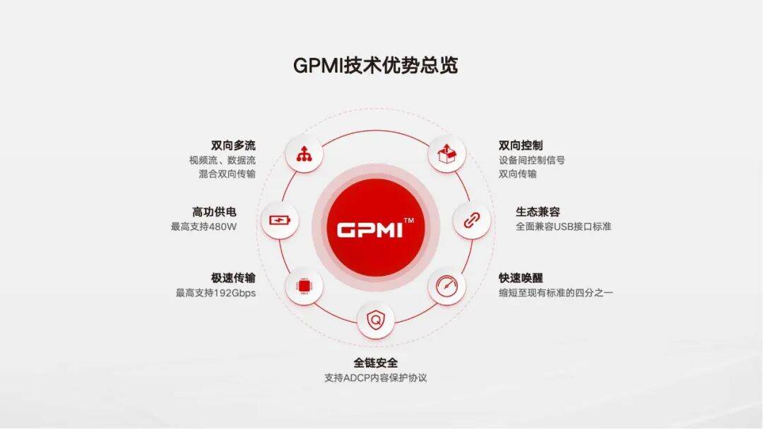 更值得关注的是,即将推出的 GPMI 转接芯片将进一步打破 “新标准与老设备” 的兼容壁垒。该芯片兼容USB生态并可使用现有Type-C规格物理接口,可让存量电视、显示器等海量老设备具备部分 GPMI 功能,无需更换硬件即可接入 GPMI 生态。这一突破将大幅扩大 GPMI 的应用范围,为生态从 1 到 N 的扩张奠定用户基础。