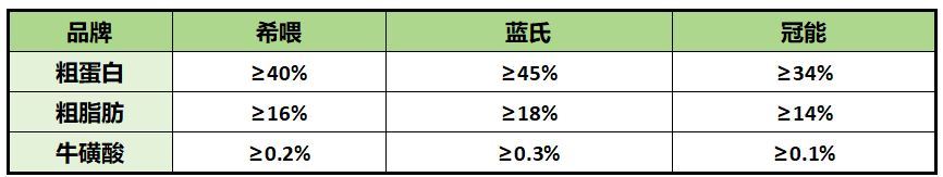 冠能猫粮的营养价值相对来说比较基础,蛋白质≥34%,脂肪≥14%,牛磺酸≥0.1%,基本可以维持猫咪的基础营养。