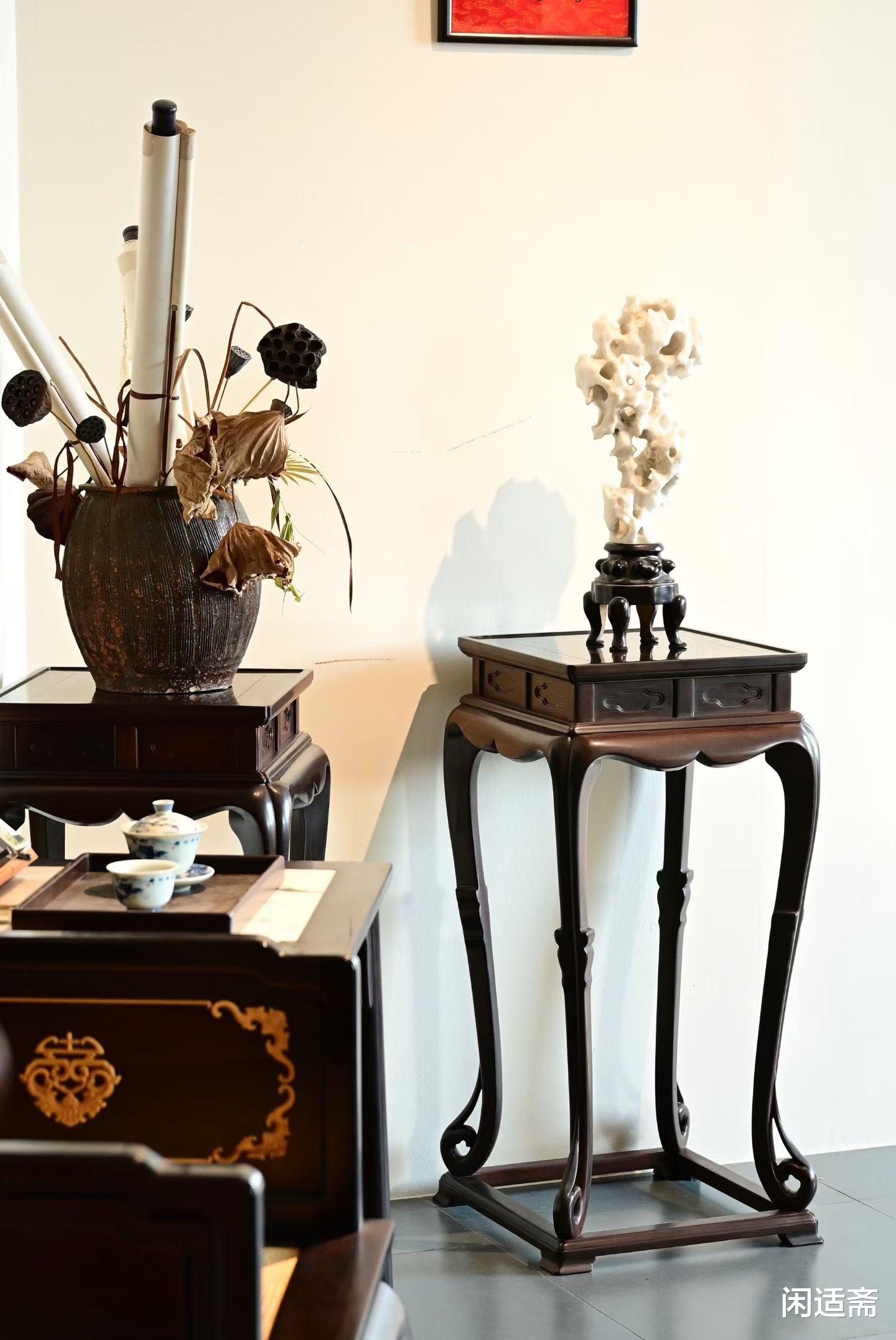 明式家具经眼录 大红酸枝 四足高束腰三弯腿托泥香几