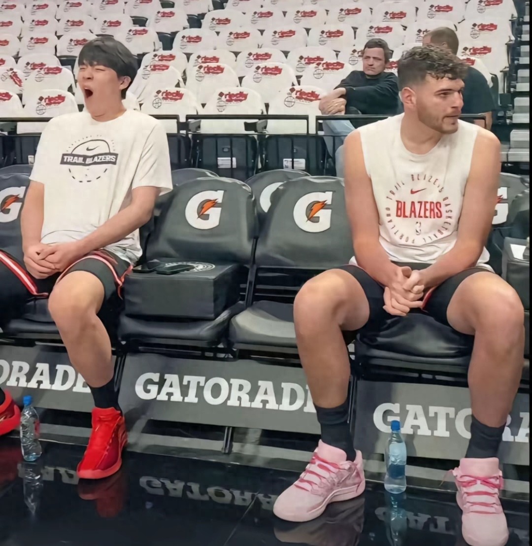 从目前几场比赛来看,杨瀚森场均时间只有几分钟,不是教练不愿意给其机会,而是杨汉森确实没有展现出赢球的欲望和留在场上的拼劲。暂且不说杨瀚森频繁去吃火锅烤肉,带着女友一块去美国打球。近期又有球迷晒出了开拓者赛前训练的一幕,和老大哥克林根坐在一起,两人的下肢维度相似,但克林根的胳膊明显要大杨瀚森一圈。