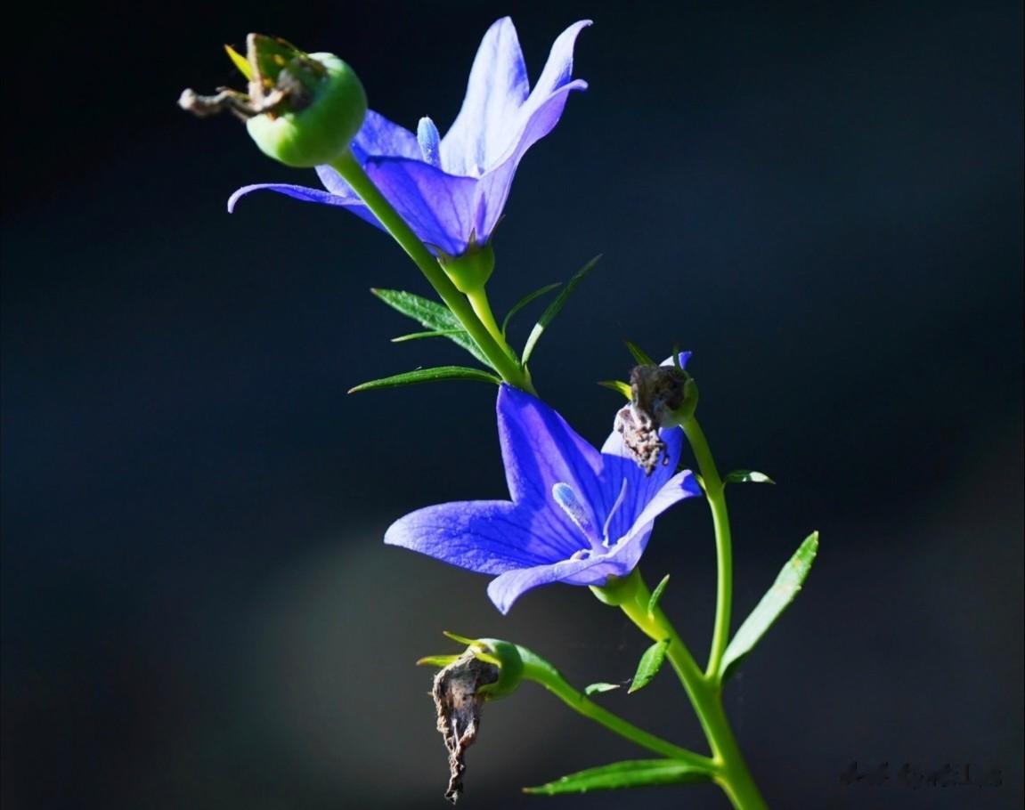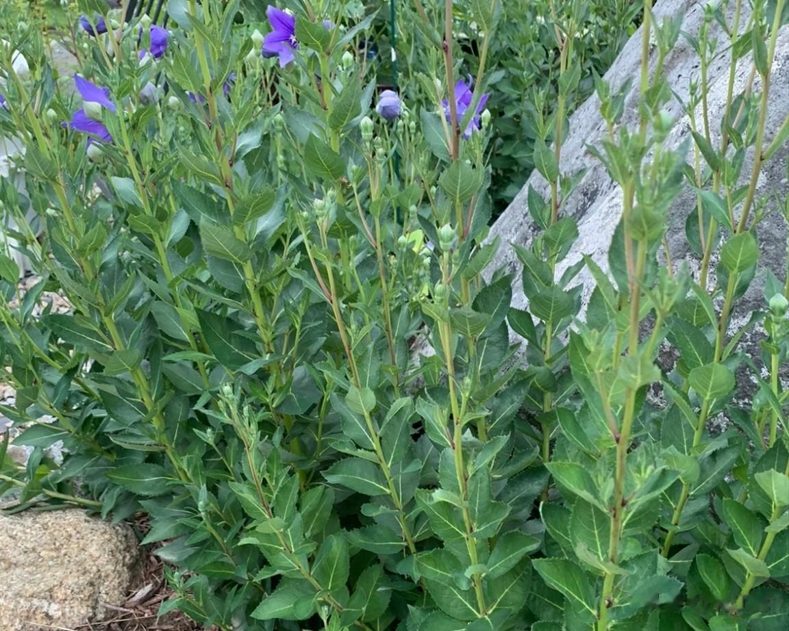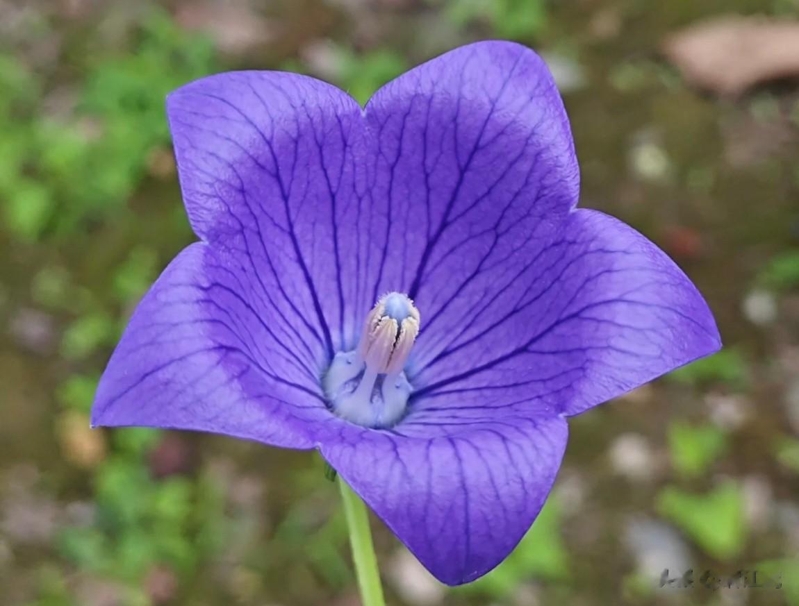 “桔梗”的花比较靓丽,常单生于植株茎顶或呈疏生的复聚伞花序,钟形,裂片三角形,花朵呈蓝紫色或白色,直径约3-5厘米。