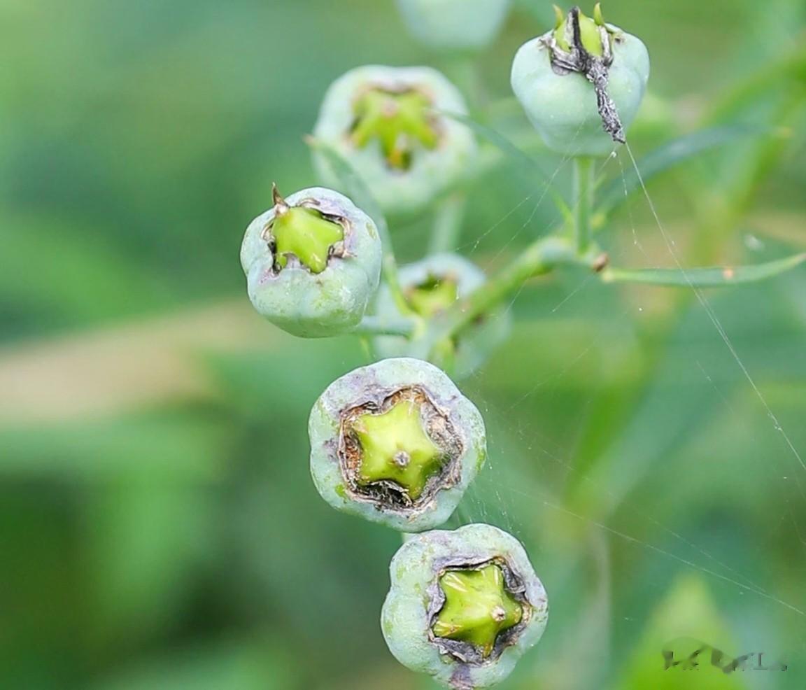 “桔梗”的果实为卵圆形的蒴果,成熟时顶端四裂,表面有纵棱。