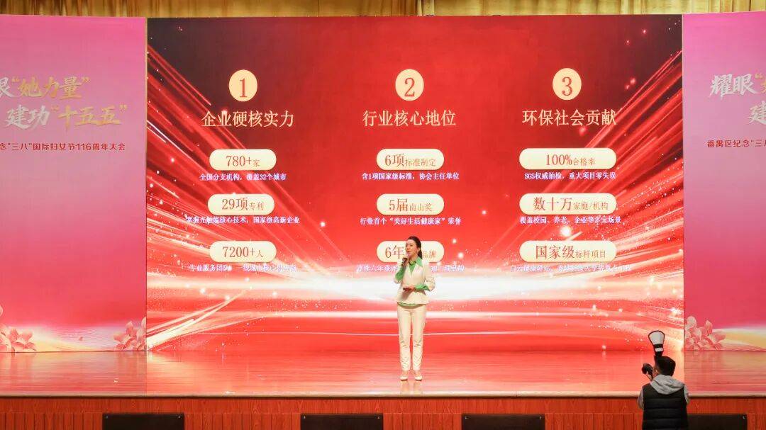 本次大会规格高、覆盖面广,广州市妇联副主席陈艳艳,番禺区委书记黄彪,区人大常委会主任覃海深,区委副书记饶洁怡等市区领导出席盛会,区委办、区政府办、区妇联等相关单位负责人,与全区巾帼建功标兵、各行业重点企业女性掌舵人、各界妇女代表共 500 余人齐聚一堂,共赴这场属于巾帼女性的盛会。参会的企业女性代表均来自番禺本土各行业领军及重点培育企业,覆盖绿色环保、先进制造、科技创新等多个赛道,优吸环保作为大石街道绿色环保产业的标杆,受邀出席既是对企业深耕室内空气治理领域发展成果的高度肯定,更是对其以女性为核心的管理团队深耕实业、引领行业发展的充分认可,彰显了企业在番禺绿色高质量发展进程中的行业标杆价值。