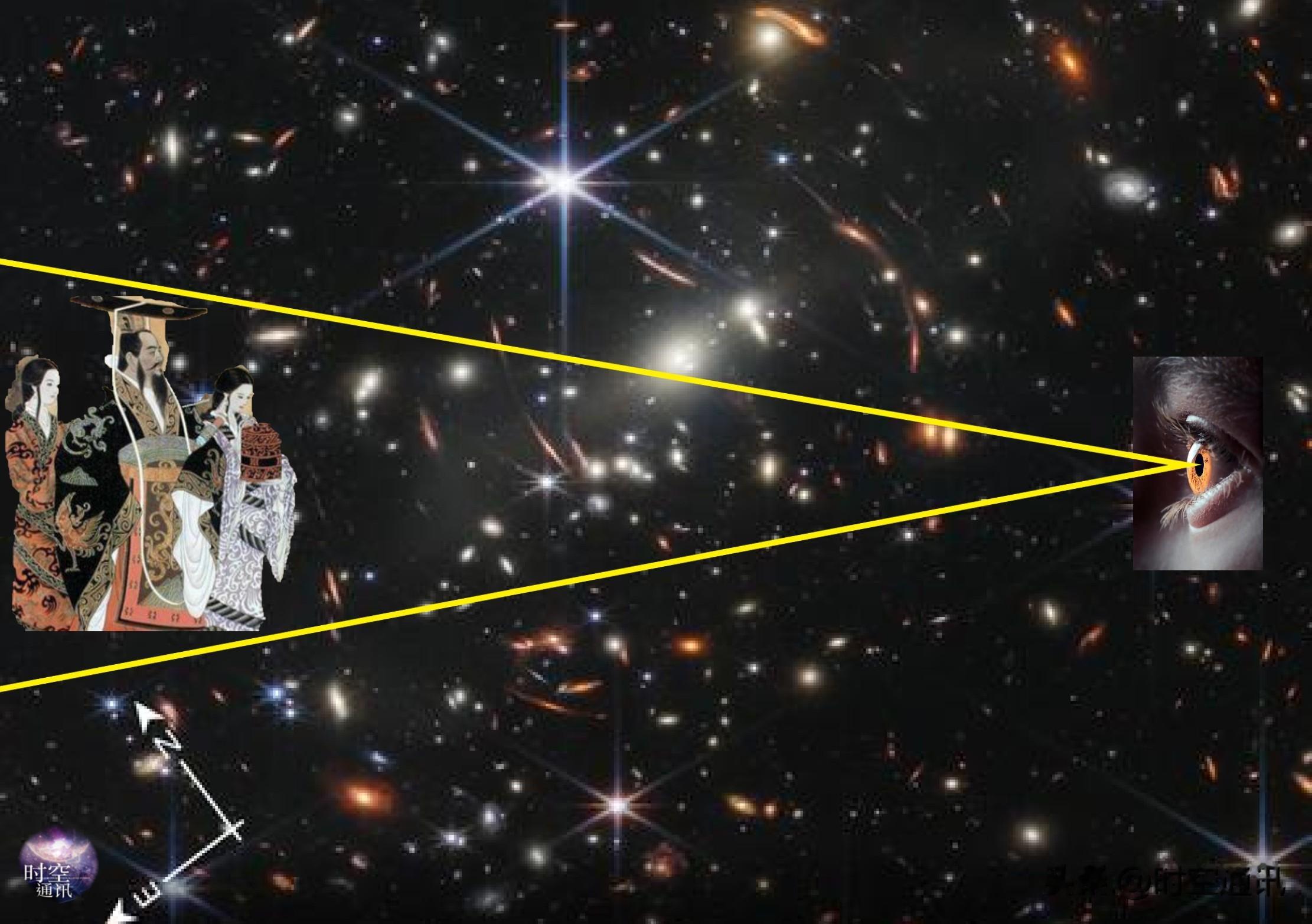 引申到更遥远的天体,如1光年距离的天体,我就是1年前的样子;1亿光年的天体,就是1亿年前的样子;韦伯空间望远镜看到135亿光年的星系,就是宇宙诞生3亿年的样子。人们幻想能看到秦始皇登基样子的念头,就是基于这种原理得来的。