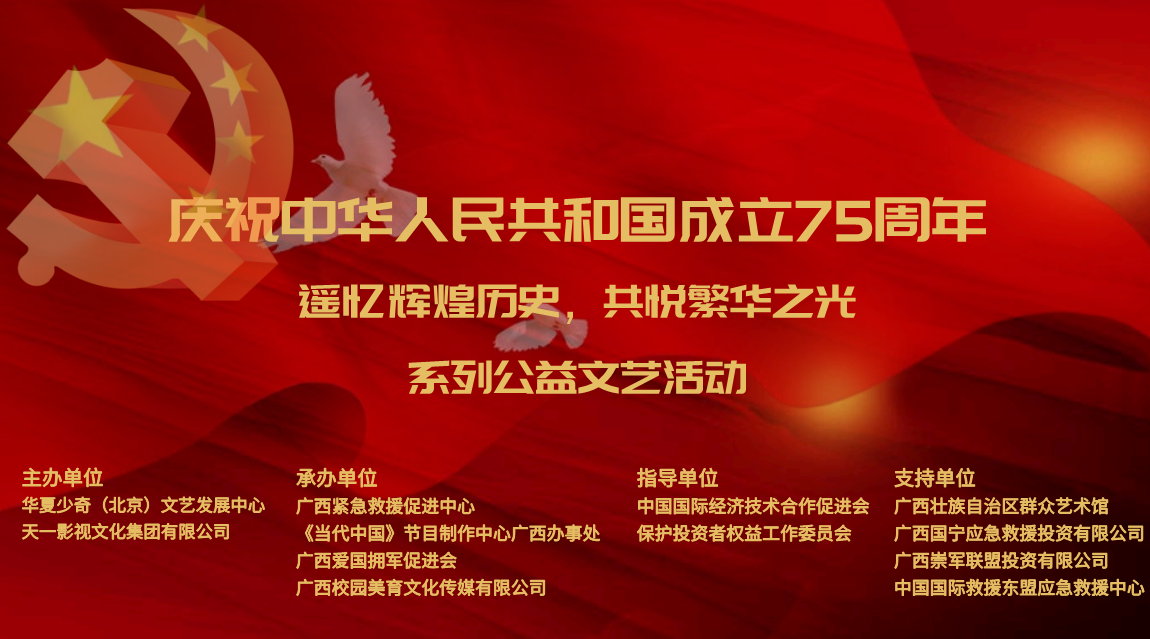 在喜迎中华人民共和国成立 75 周年之际,八桂大地沉浸在一片热烈而欢乐的氛围之中。一场以“遥忆辉煌历史,共悦繁华之光”为主题的庆祝中华人民共和国成立 75 周年庆典大型系列公益文艺活动正在广西如火如荼地展开,优秀节目决赛将于9月26日举行。为期三个多月的文艺展演活动,为广西这片充满魅力的土地又增添了一抹绚丽的文化色彩。