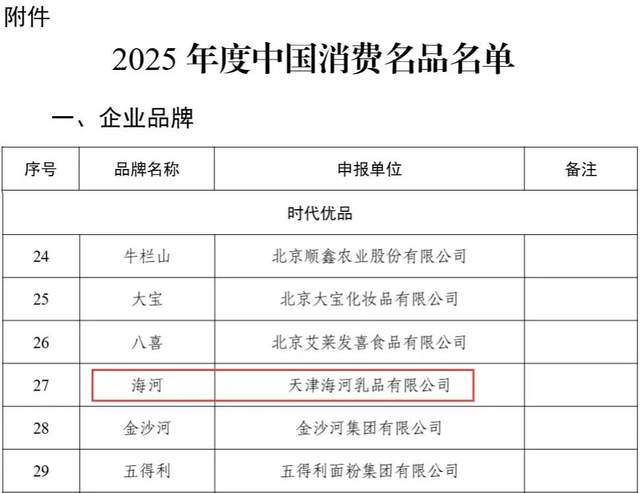 15、近日,工业和信息化部消费品工业司公布2025年度“中国消费名品”名单,天津食品集团海河乳品公司成功入选“时代优品”类别。这一国家级认证,不仅是对老字号企业现代化生存能力的极致肯定,更是对“海河”品牌以创新与品质赢得时代青睐的生动诠释。