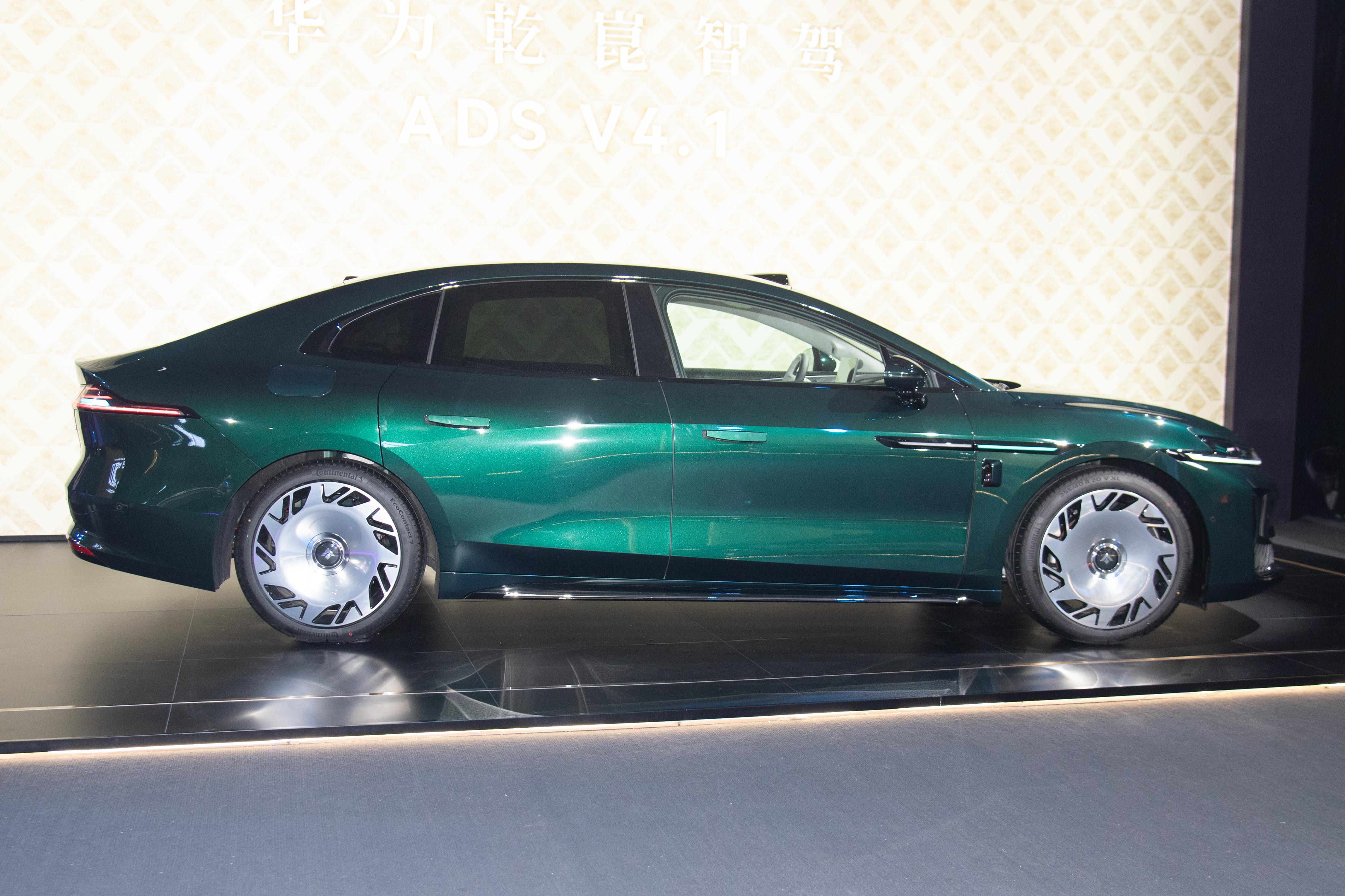 现在回想起来,我也渐渐爱上了这款车型。单从外观看,就是咱们年轻人喜欢的类型。它遵循自然美学的设计,把美与灵动融入车身。灵巧中又透露着沉稳,开在路上那回头率也是满满的。它的车身尺寸特别大,但一点也不笨拙。宽高比也很协调,风阻表现更是优秀,这不仅让车子外观更流畅,还能降低能耗。封闭式的前脸设计,彰显了它新能源的身份,下方是大尺寸的黑色格栅,横跨于车头,一下子就把视觉宽度拉宽了,既兼顾了散热,又符合空气动力学。全球首 ..创的三面式翻转大灯,能切换三种状态,还内置华为百万像素投影,可支持多种灯语,当我们走向它,满满仪式感瞬间呈现。那超长星环灯带,从前面一直延伸到翼子板,晚上开在路上辨识度极高。